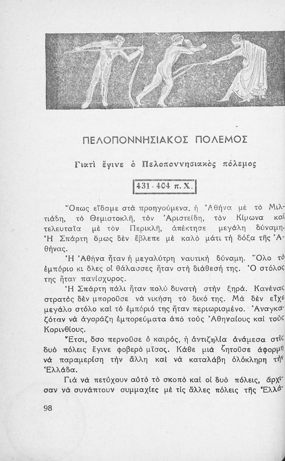 Μαθητικό βοήθημα Ιστορίας Γ΄ και Δ΄ Δημοτικού που καλύπτει την περίοδο από την κάθοδο των Δωριέων ως την ηγεμονία των Θηβών. Περιέχει και στοιχεία μυθολογίας.