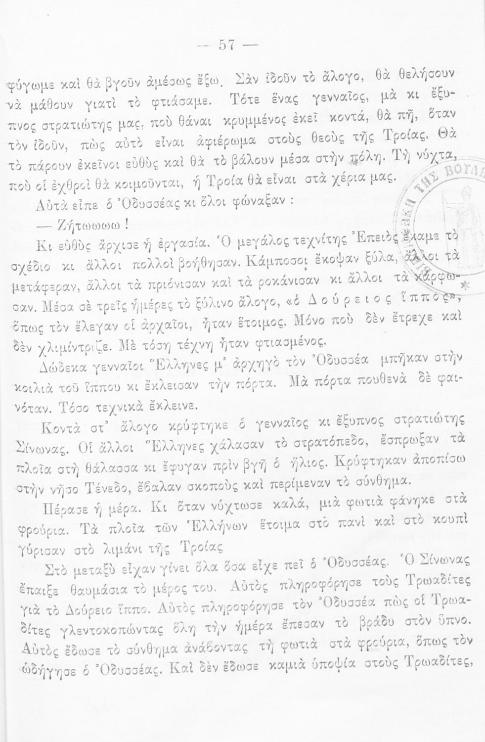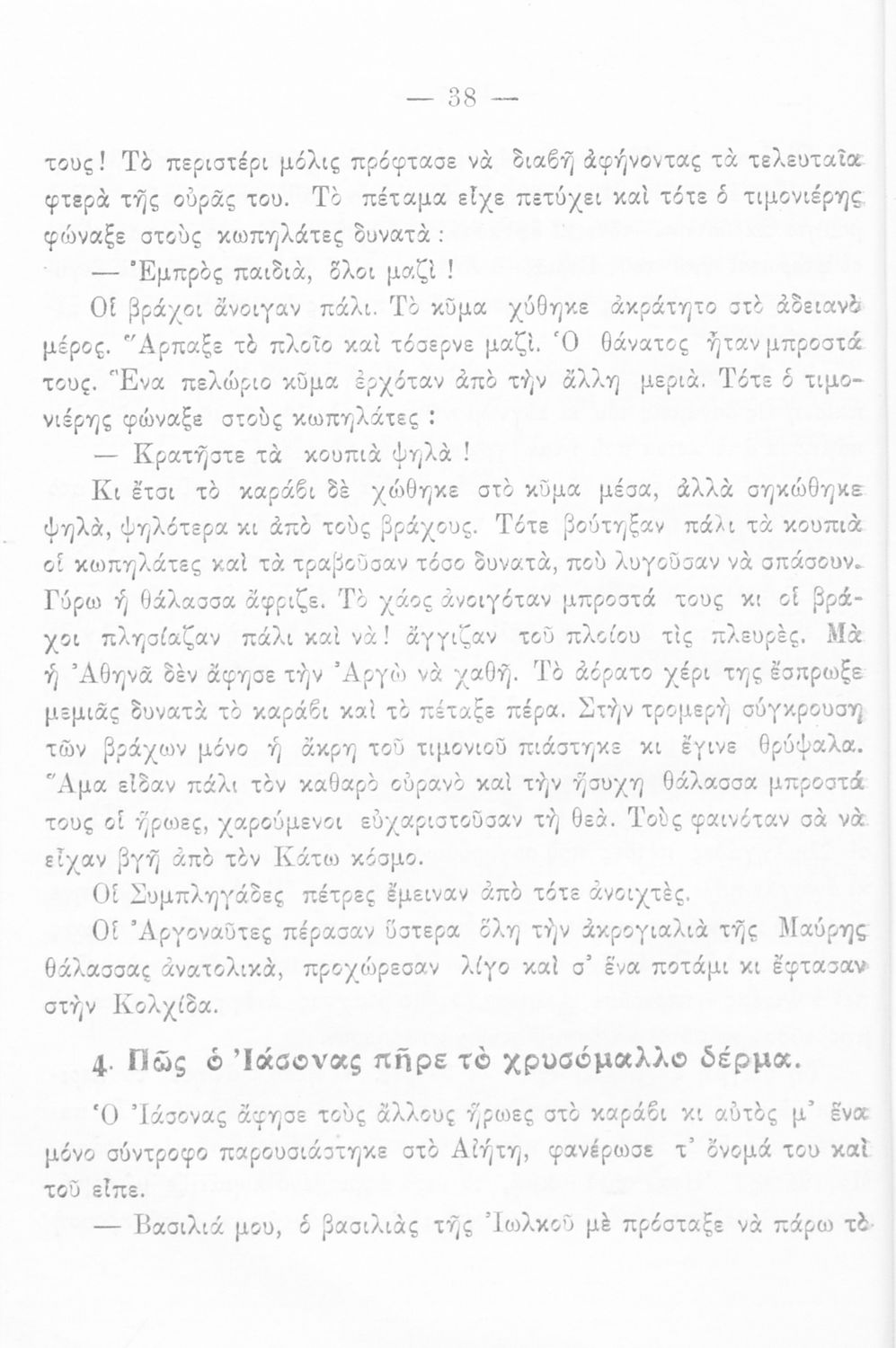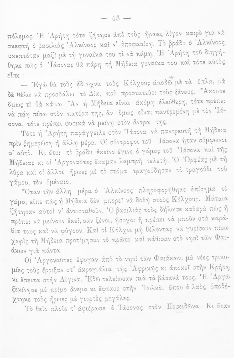 Μαθητικό βοήθημα της Γ΄ Δημοτικού για το μάθημα της Ιστορίας. Το σύγγραμμα αναφέρεται στην ελληνική μυθολογία. Τα αποσπάσματα από την Οδύσσεια του Ομήρου είναι από τη μετάφραση του Εφταλιώτη.