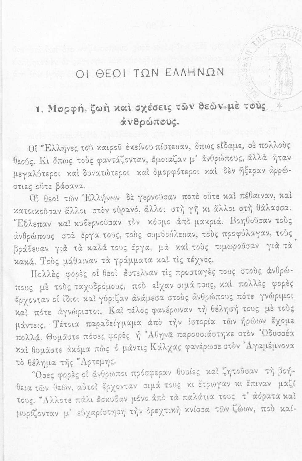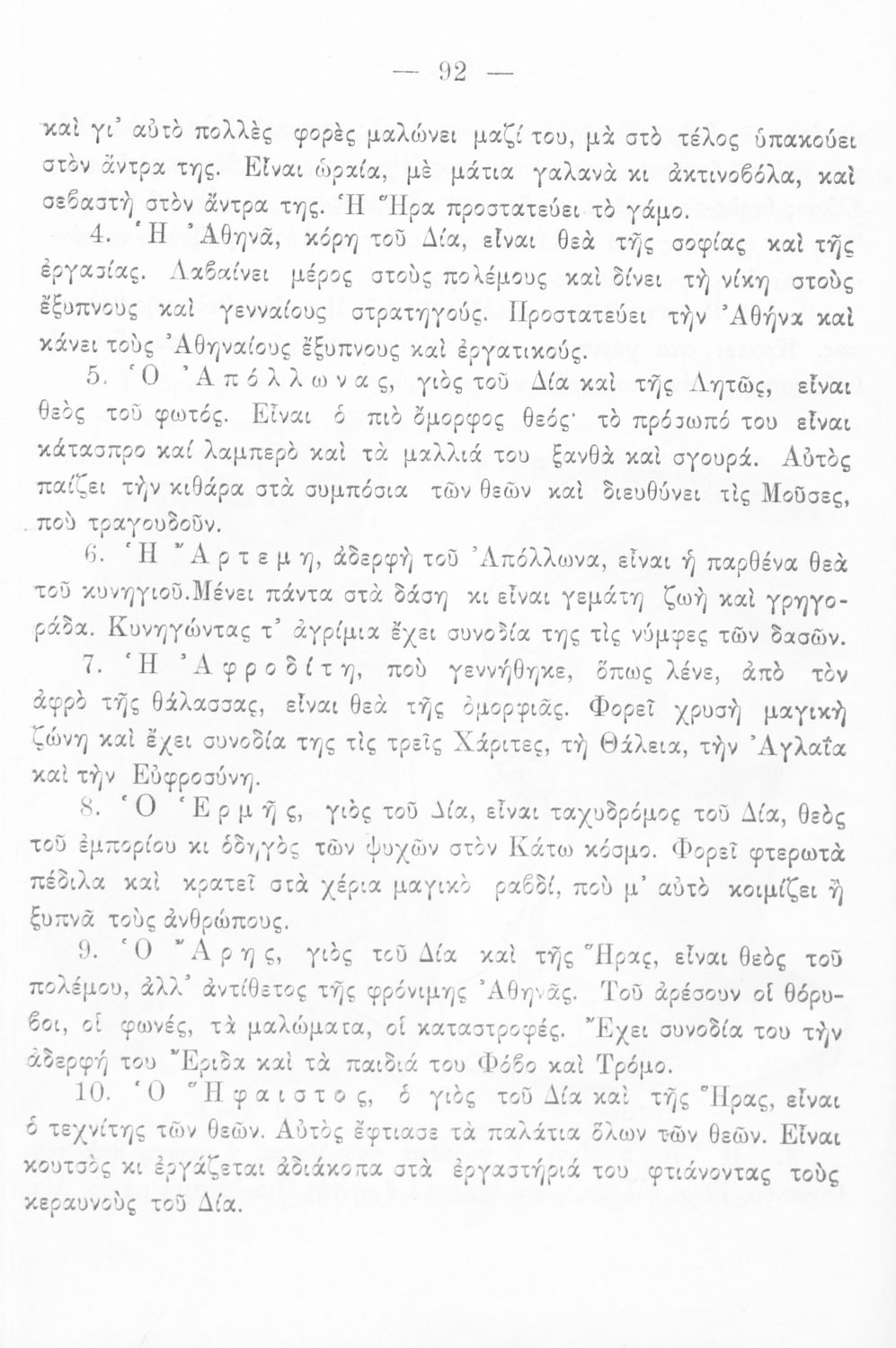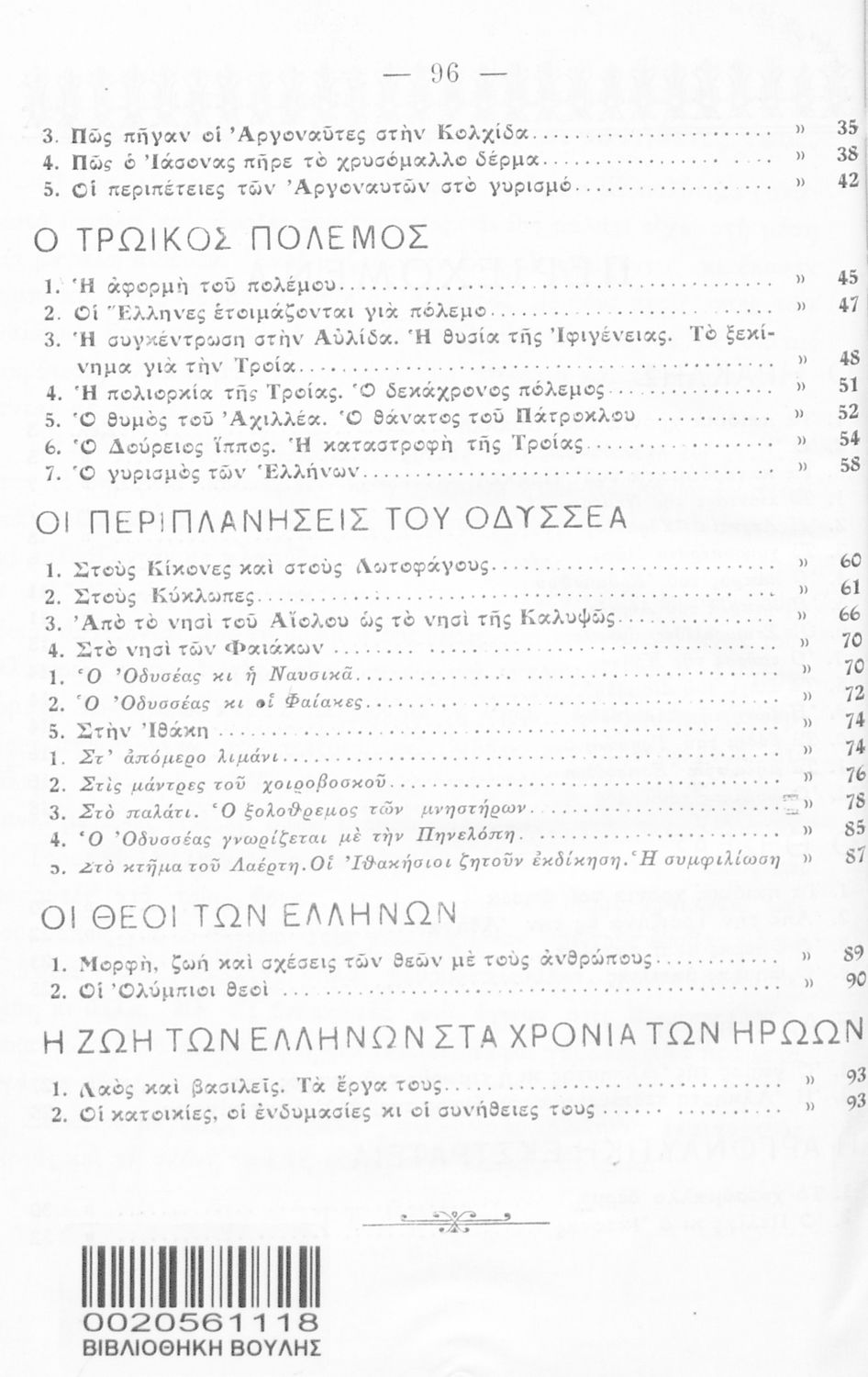 Μαθητικό βοήθημα της Γ΄ Δημοτικού για το μάθημα της Ιστορίας. Το σύγγραμμα αναφέρεται στην ελληνική μυθολογία. Τα αποσπάσματα από την Οδύσσεια του Ομήρου είναι από τη μετάφραση του Εφταλιώτη.