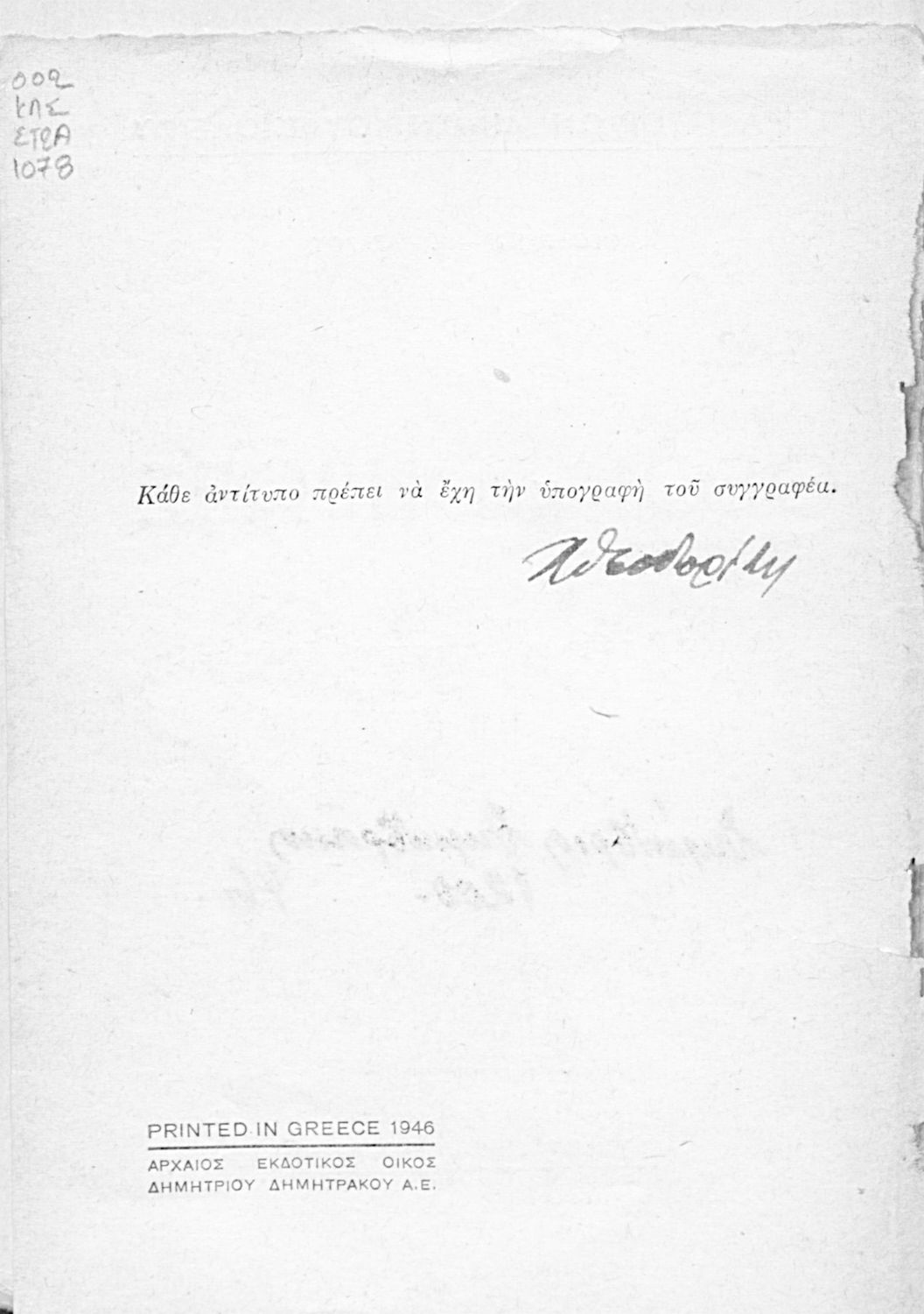 Εκδότης: Δημήτριος Δημητράκος Έτος έκδοσης: 1946 Τόπος έκδοσης: Αθήνα |