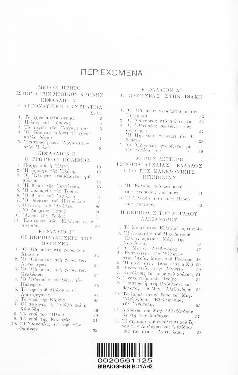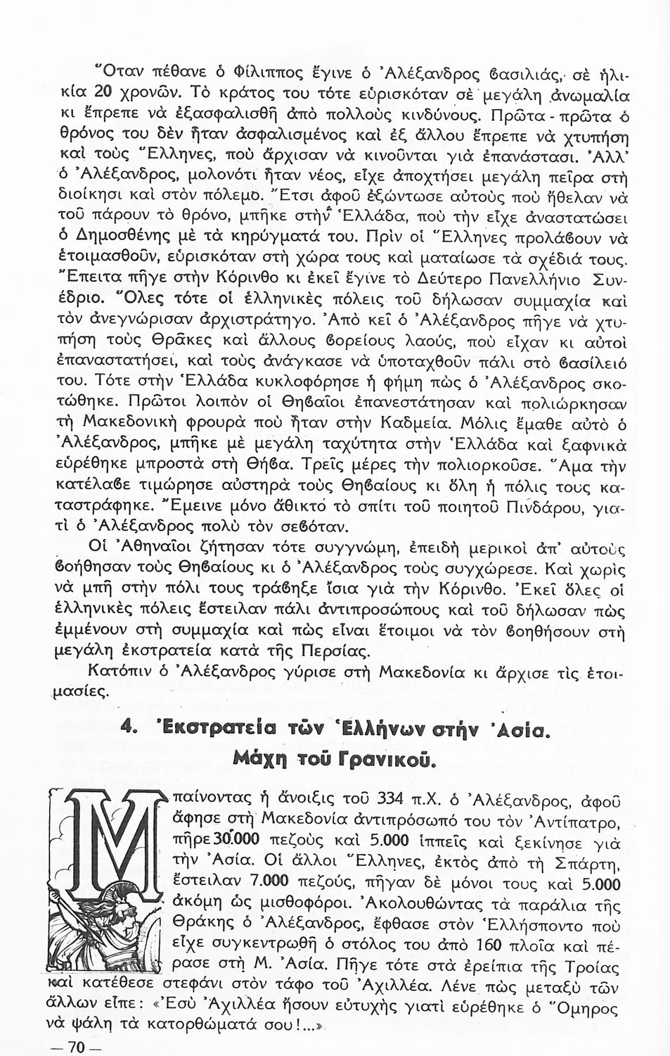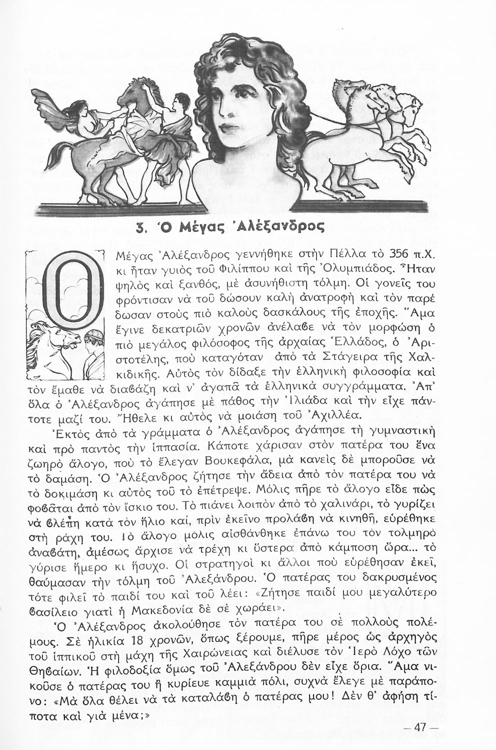 Βαθμίδα εκπαίδευσης: Πρωτοβάθμια Τάξη: Γ' Δημοτικού / Δ' Δημοτικού Μάθημα: Ιστορία Γλώσσα: Δημοτική Παρουσίαση περιεχομένου: Μαθητικό βοήθημα Ιστορίας για τις Γ΄ και Δ΄ Δημοτικού που περιλαμβάνει θέματα από την ελληνική μυθολογία και την ιστορία του Μεγάλου Αλεξάνδρου. |