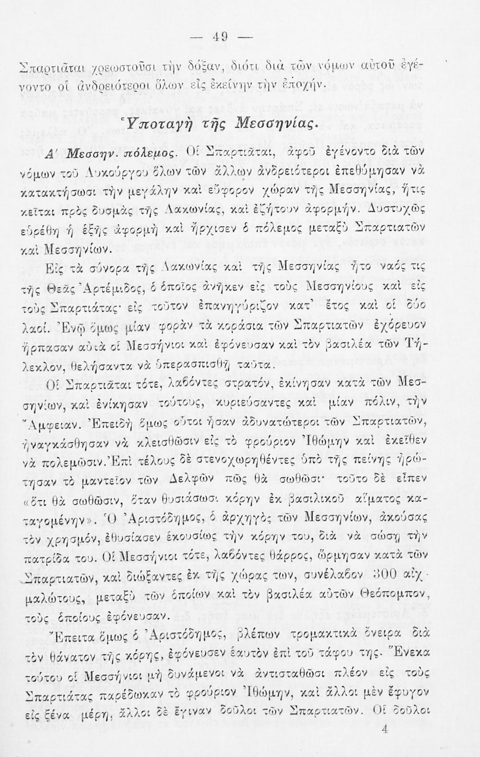 Μαθητικό βοήθημα Ιστορίας. Γ΄ και Δ΄ Δημοτικού Παρθεναγωγείου που καλύπτει το διάστημα από τους προϊστορικούς χρόνους ως τη μάχη της Μαντίνειας