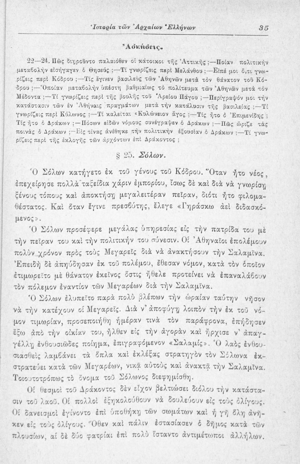 Τίτλος: Ιστορία των Αρχαίων Ελλήνων μέχρι της εν Μαντινεία μάχης. Δια την Α΄ Τάξιν των Ελληνικών Σχολείων και Ανωτέρων Παρθεναγωγείων