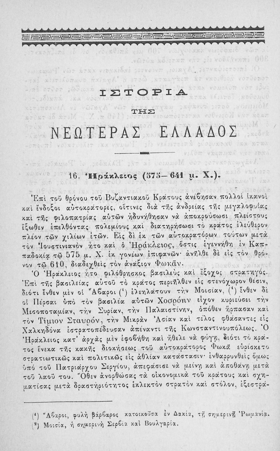 Σχολικό Εγχειρίδιο Ιστορίας Ε' και ΣΤ΄ Δημοτικού Σχολείου που περιλαμβάνει την περίοδο από τους ηρωικούς και μυθικούς χρόνους μέχρι τη βασιλεία του Όθωνα και του Γεωργίου Α΄. Περιέχει και παράρτημα για την ανακάλυψη της Αμερικής.