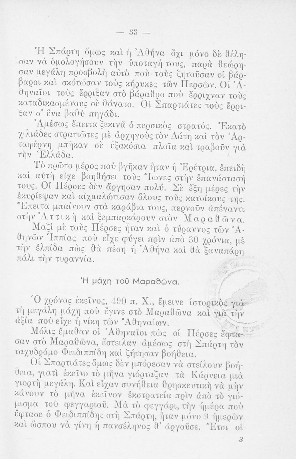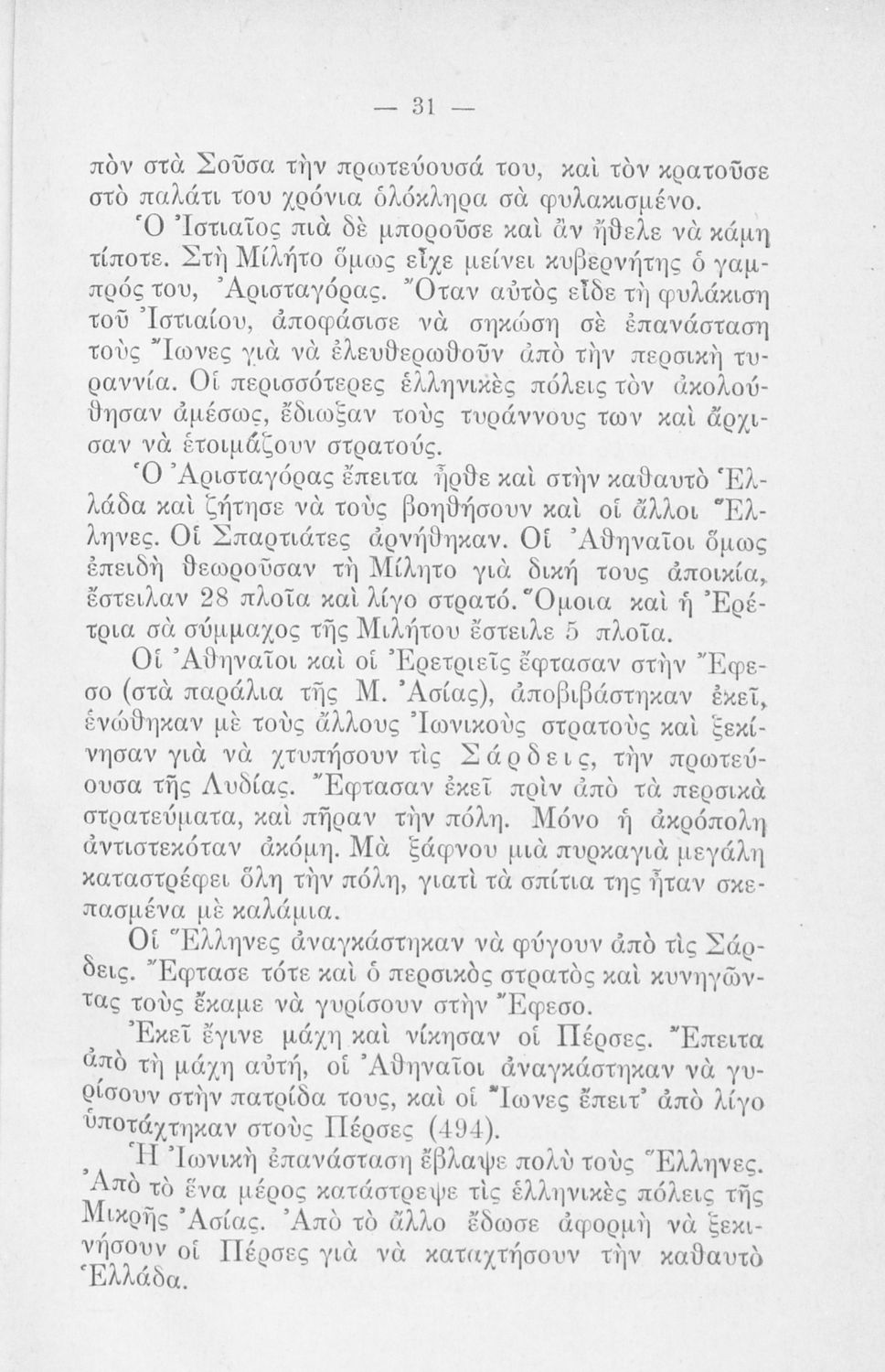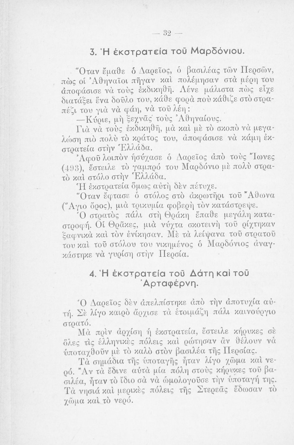 Βαθμίδα εκπαίδευσης: Πρωτοβάθμια Τάξη: Δ' Δημοτικού Μάθημα: Ιστορία Γλώσσα: Δημοτική με στοιχεία καθαρεύουσας Παρουσίαση περιεχομένου: Σχολικό εγχειρίδιο Ιστορίας. Δ' Δημοτικού που καλύπτει την περίοδο από την κάθοδο των Δωριέων ως την κατάληψη της Ελλάδας από τους Ρωμαίους. |