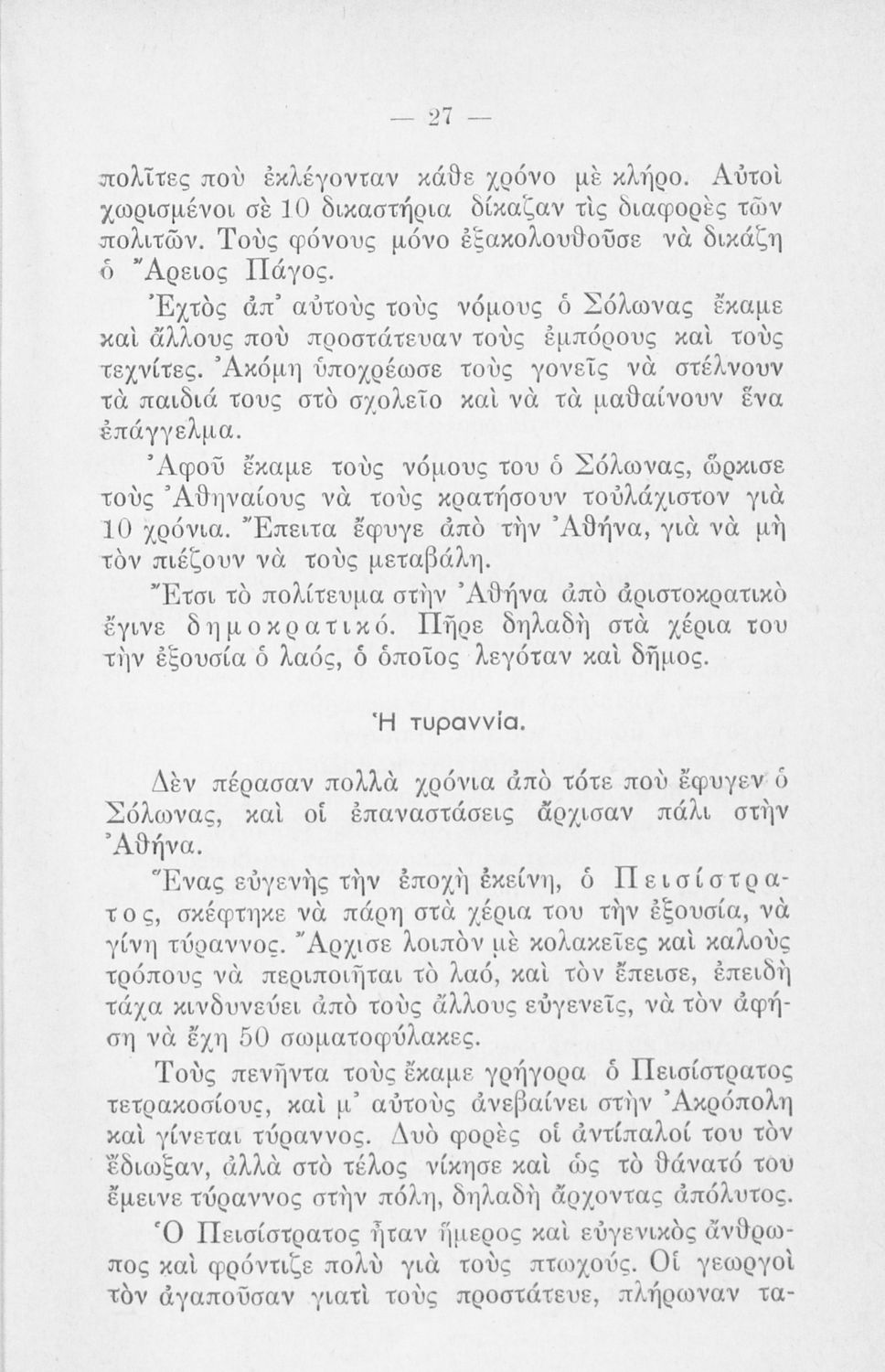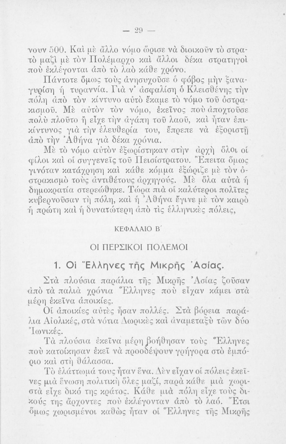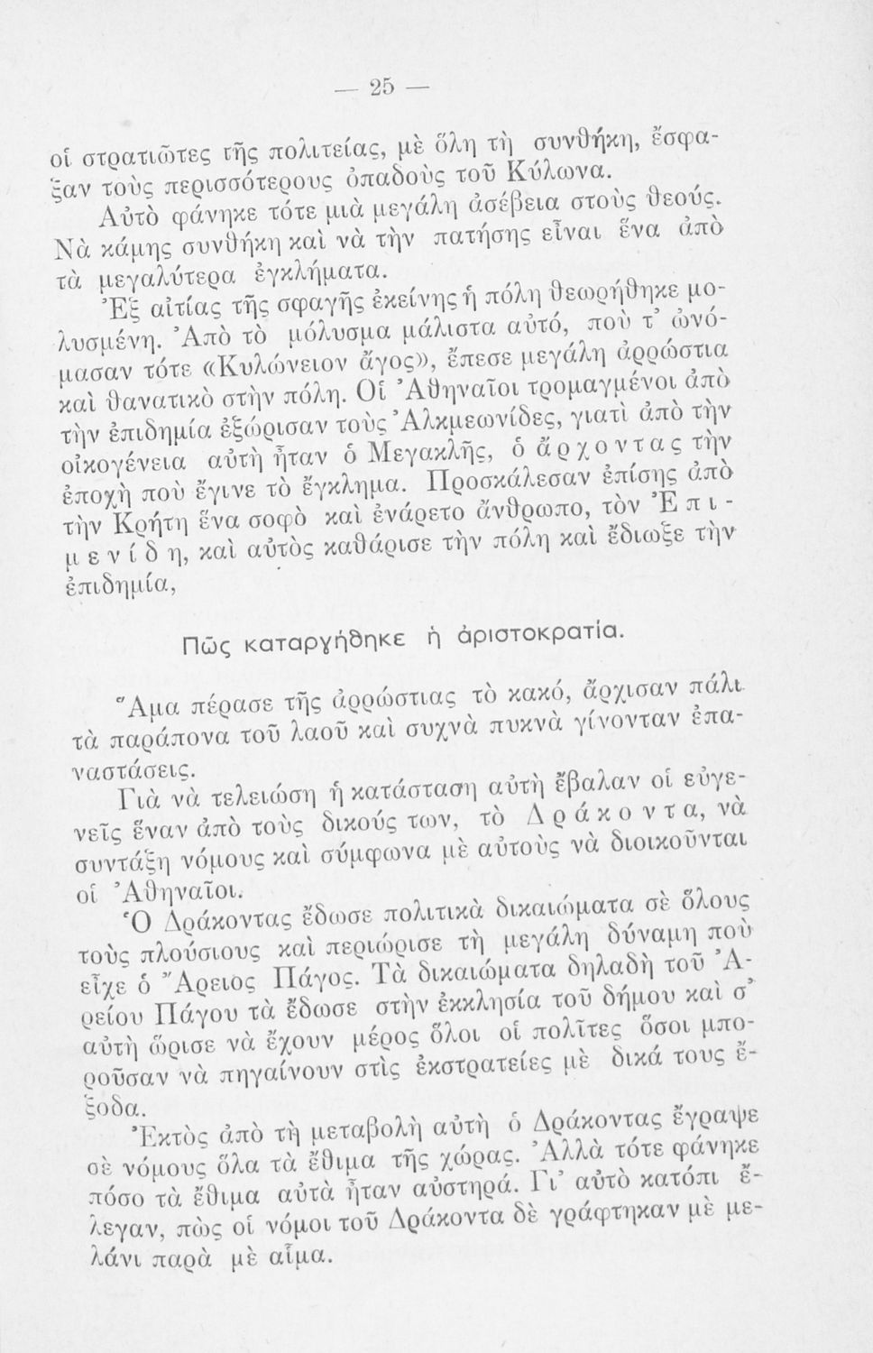 Βαθμίδα εκπαίδευσης: Πρωτοβάθμια Τάξη: Δ' Δημοτικού Μάθημα: Ιστορία Γλώσσα: Δημοτική με στοιχεία καθαρεύουσας Παρουσίαση περιεχομένου: Σχολικό εγχειρίδιο Ιστορίας. Δ' Δημοτικού που καλύπτει την περίοδο από την κάθοδο των Δωριέων ως την κατάληψη της Ελλάδας από τους Ρωμαίους. |