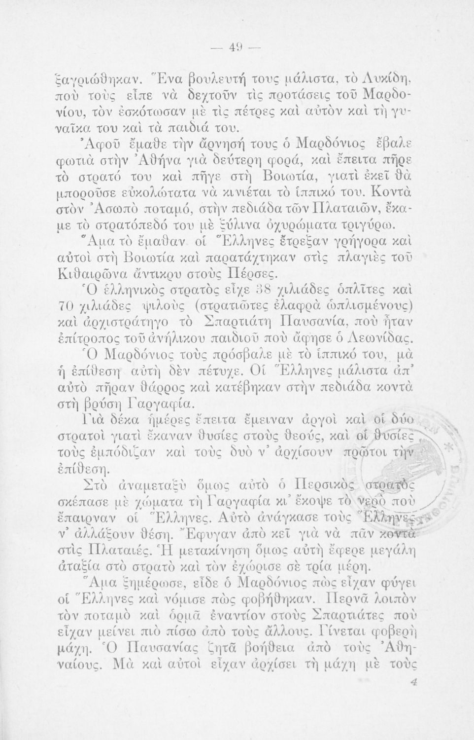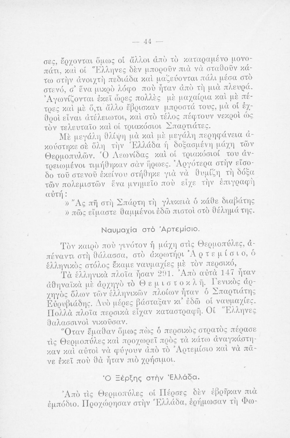 Βαθμίδα εκπαίδευσης: Πρωτοβάθμια Τάξη: Δ' Δημοτικού Μάθημα: Ιστορία Γλώσσα: Δημοτική με στοιχεία καθαρεύουσας Παρουσίαση περιεχομένου: Σχολικό εγχειρίδιο Ιστορίας. Δ' Δημοτικού που καλύπτει την περίοδο από την κάθοδο των Δωριέων ως την κατάληψη της Ελλάδας από τους Ρωμαίους. |