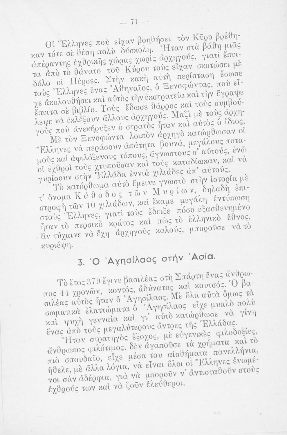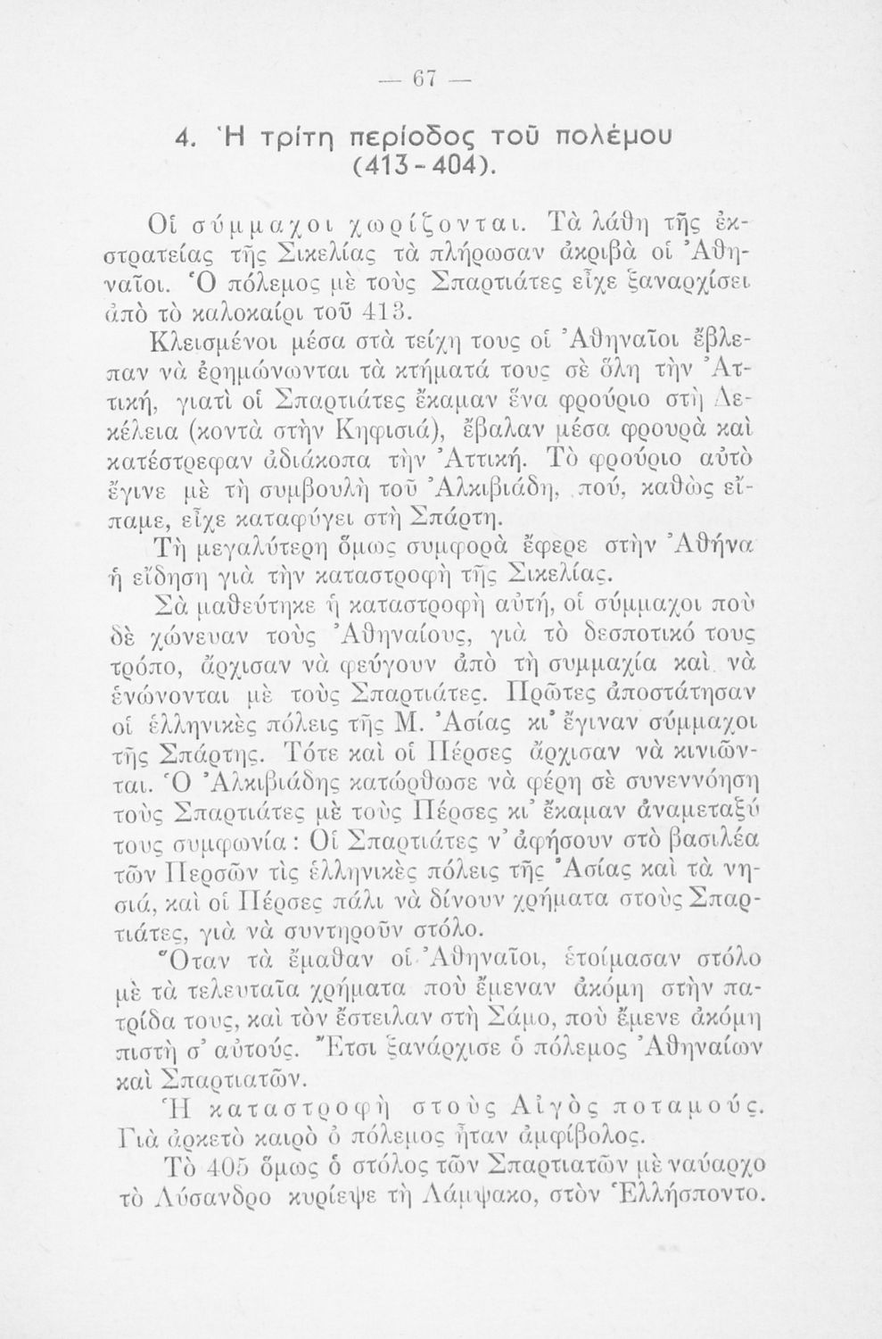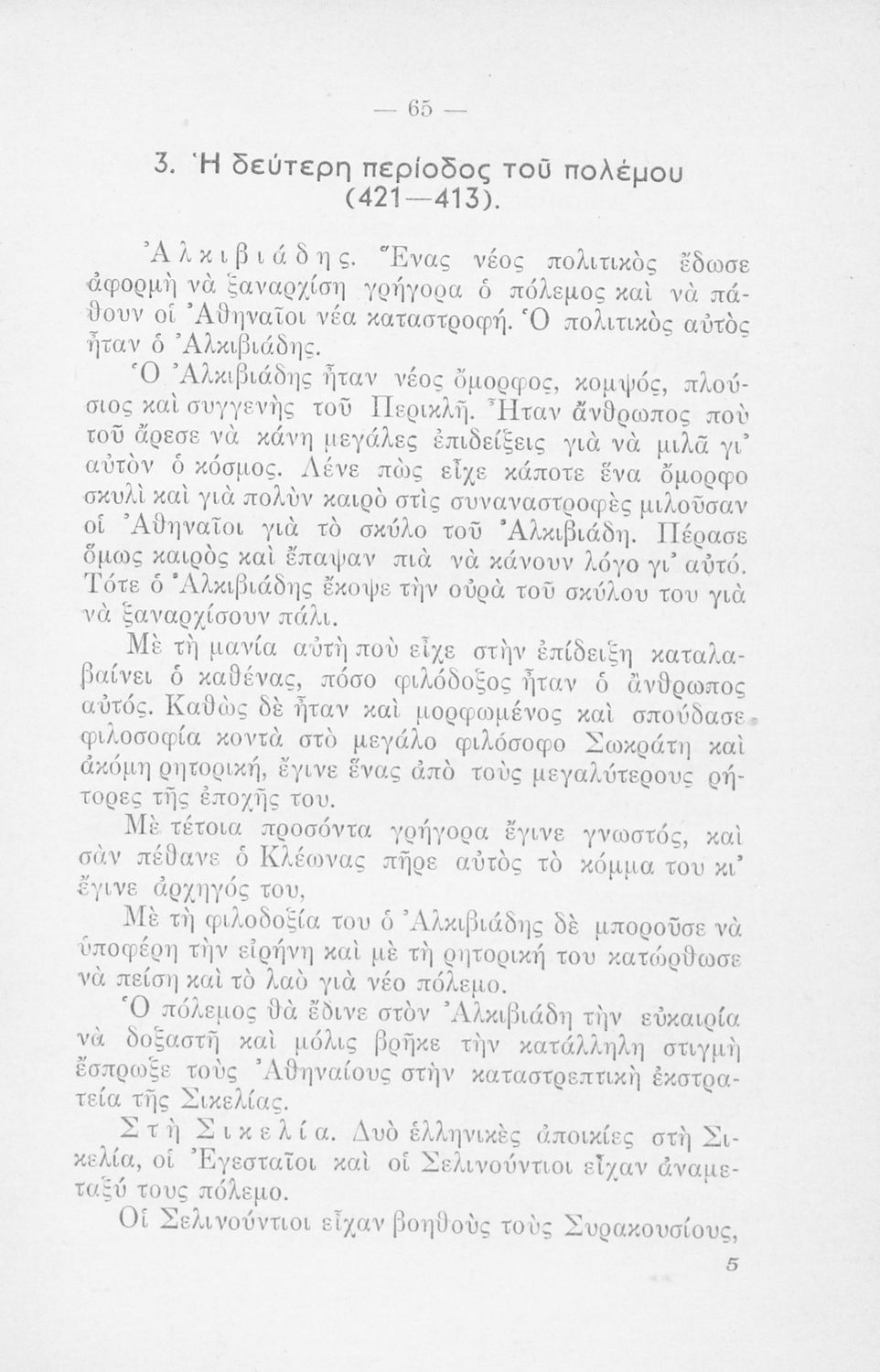 Βαθμίδα εκπαίδευσης: Πρωτοβάθμια Τάξη: Δ' Δημοτικού Μάθημα: Ιστορία Γλώσσα: Δημοτική με στοιχεία καθαρεύουσας Παρουσίαση περιεχομένου: Σχολικό εγχειρίδιο Ιστορίας. Δ' Δημοτικού που καλύπτει την περίοδο από την κάθοδο των Δωριέων ως την κατάληψη της Ελλάδας από τους Ρωμαίους. |