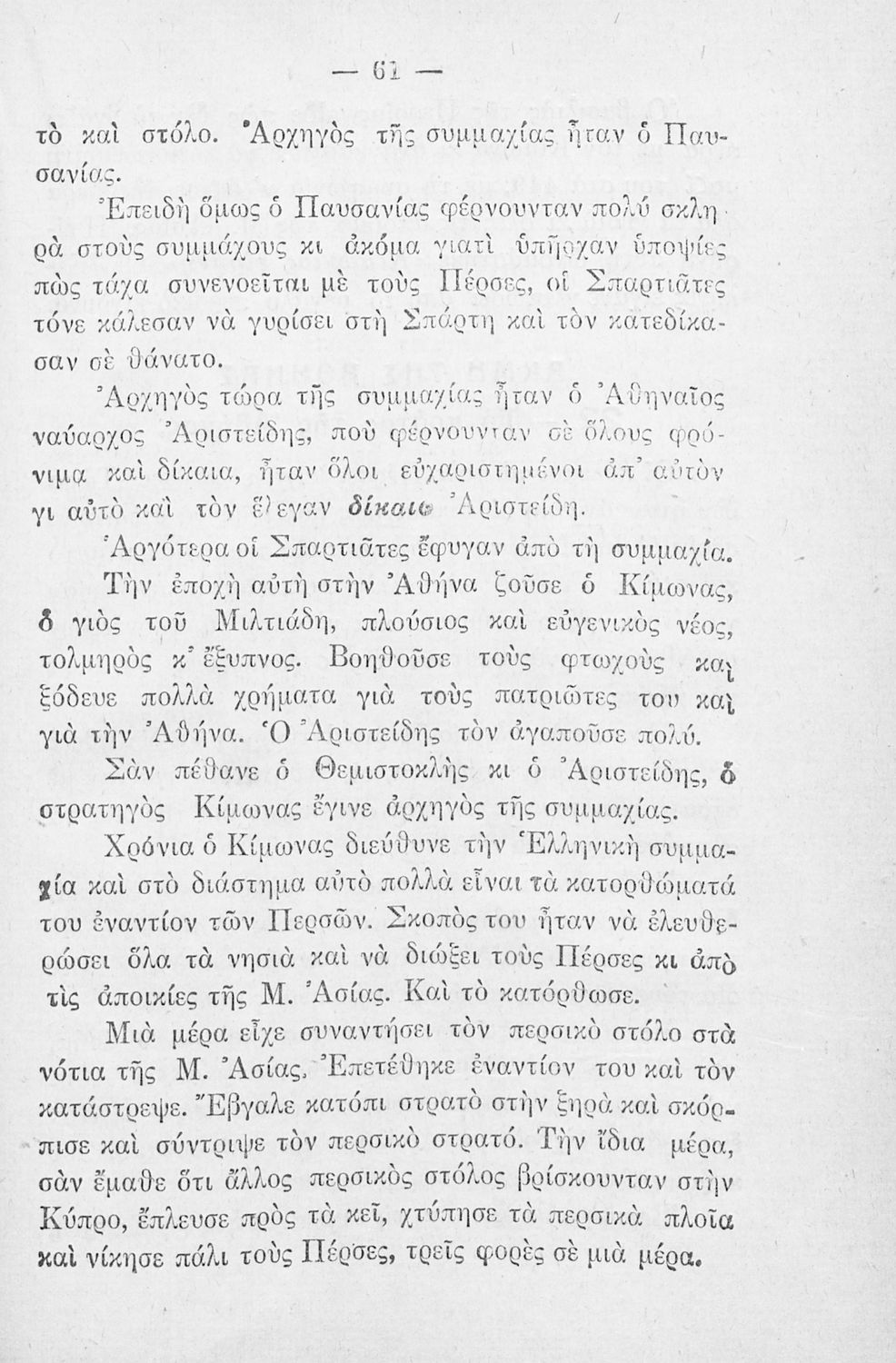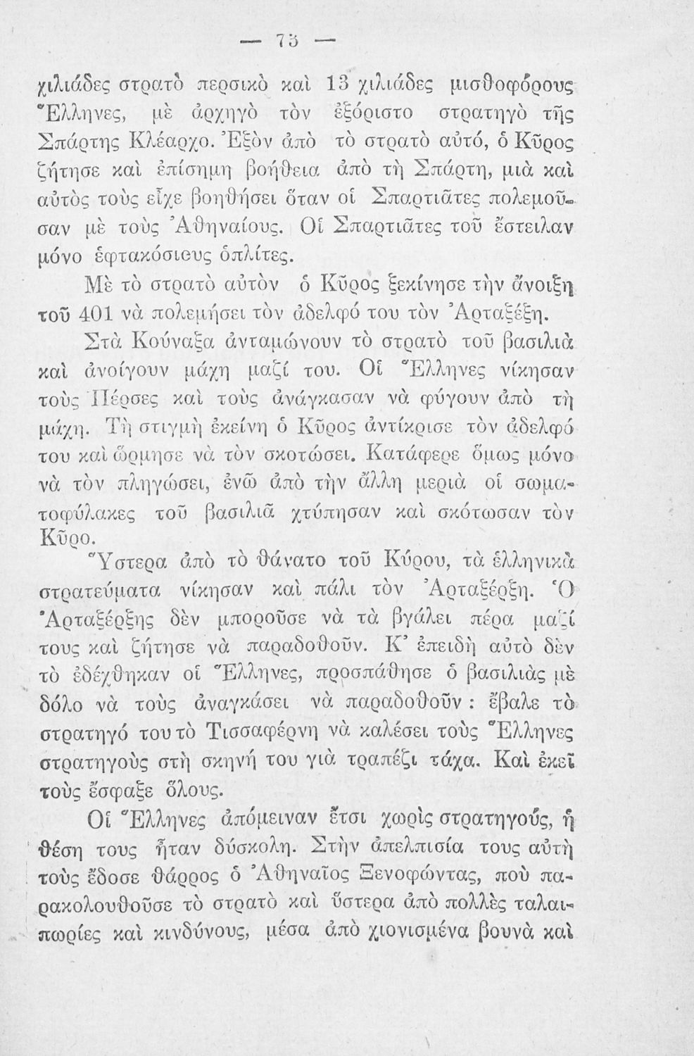 Σχολικό εγχειρίδιο Αρχαίων Ελληνικών για τις Β΄ και Γ΄ Γυμνασίου που περιέχει κείμενα βασισμένα στην αρχαία ελληνική ιστορία και μυθολογία και γραμματικές, συντακτικές και ετυμολογικές παρατηρήσεις.