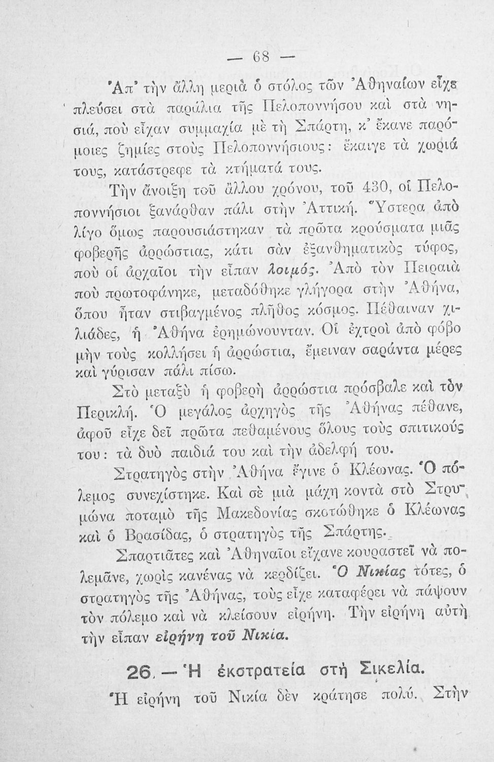 Μαθητικό βοήθημα Ιστορίας. Γ΄ και Δ΄ Δημοτικού Παρθεναγωγείου που καλύπτει το διάστημα από τους προϊστορικούς χρόνους ως τη μάχη της Μαντίνειας