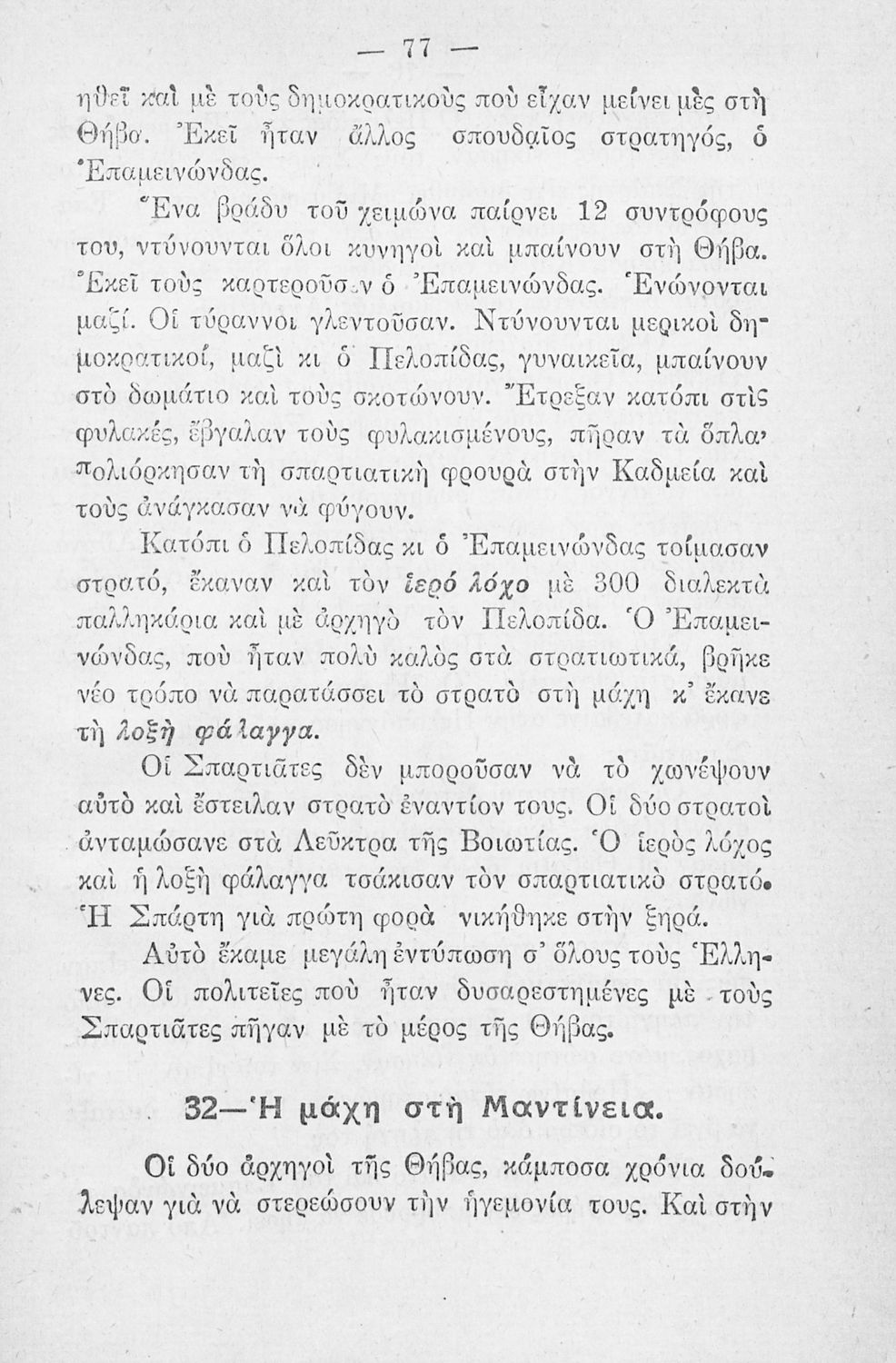 Μαθητικό βοήθημα Ιστορίας. Γ΄ και Δ΄ Δημοτικού Παρθεναγωγείου που καλύπτει το διάστημα από τους προϊστορικούς χρόνους ως τη μάχη της Μαντίνειας