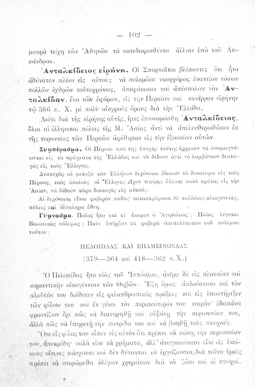 Μαθητικό βοήθημα Ιστορίας. Γ΄ και Δ΄ Δημοτικού Παρθεναγωγείου που καλύπτει το διάστημα από τους προϊστορικούς χρόνους ως τη μάχη της Μαντίνειας