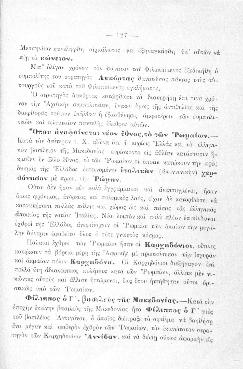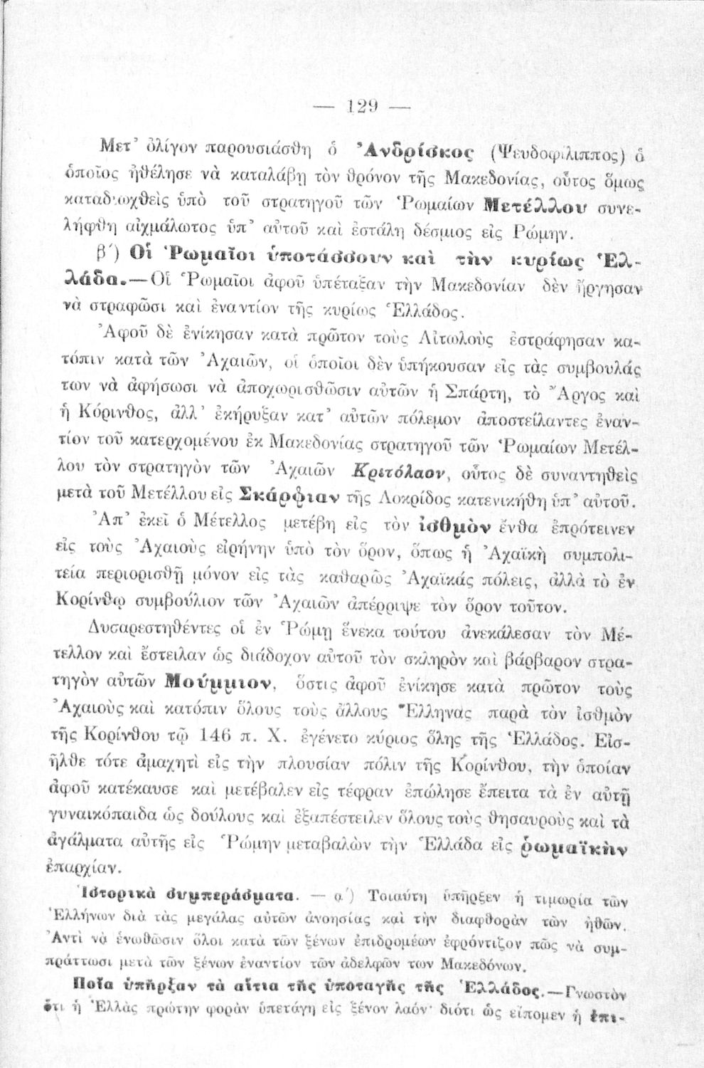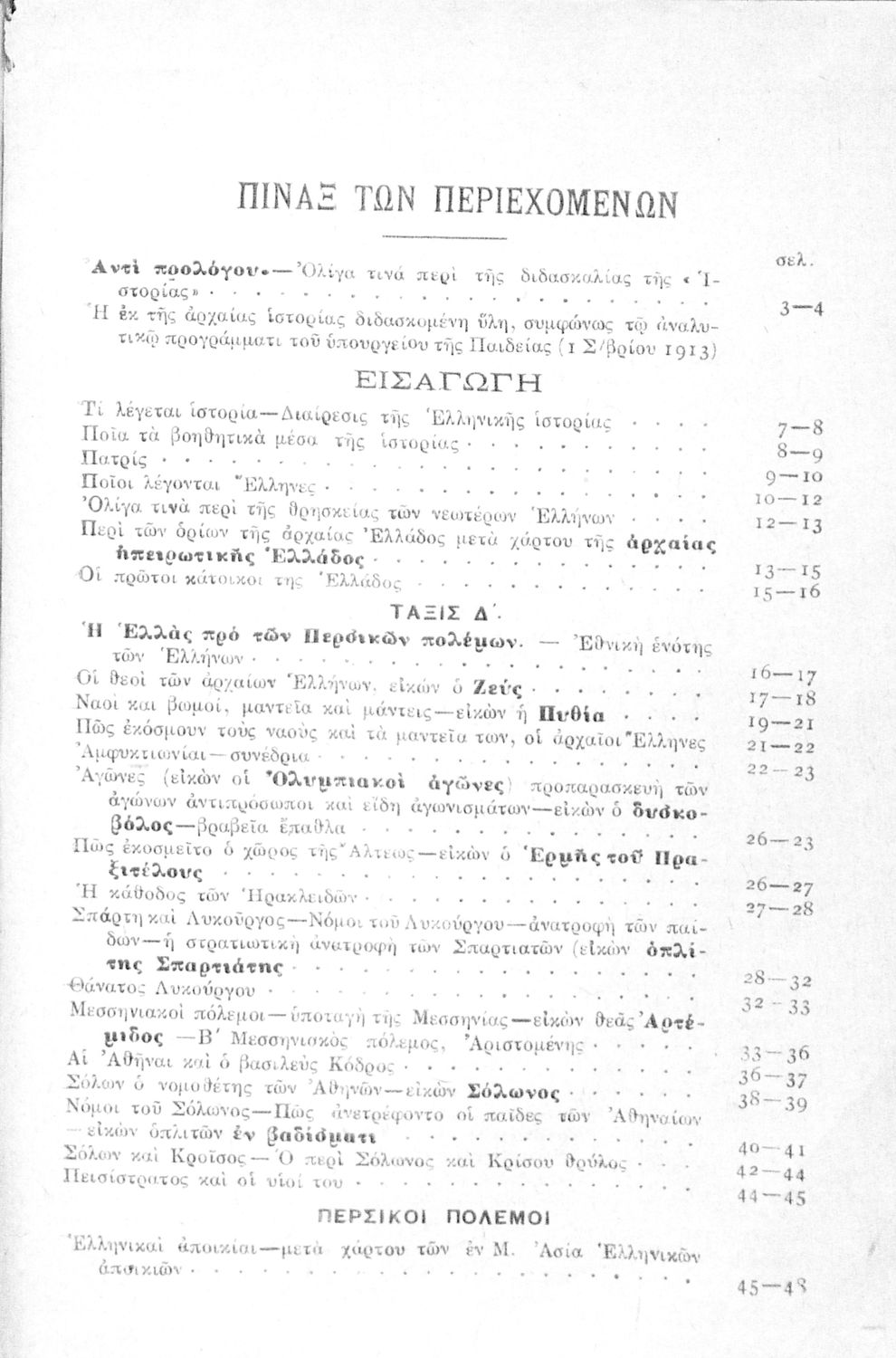 Βαθμίδα εκπαίδευσης: Πρωτοβάθμια Τάξη: Δ' Δημοτικού Μάθημα: Ιστορία Γλώσσα: Καθαρεύουσα Παρουσίαση περιεχομένου: Σχολικό εγχειρίδιο Ιστορίας Δ΄ Δημοτικού που καλύπτει το διάστημα από τους προϊστορικούς χρόνους ως την κατάληψη της Ελλάδας από τους Ρωμαίους. |