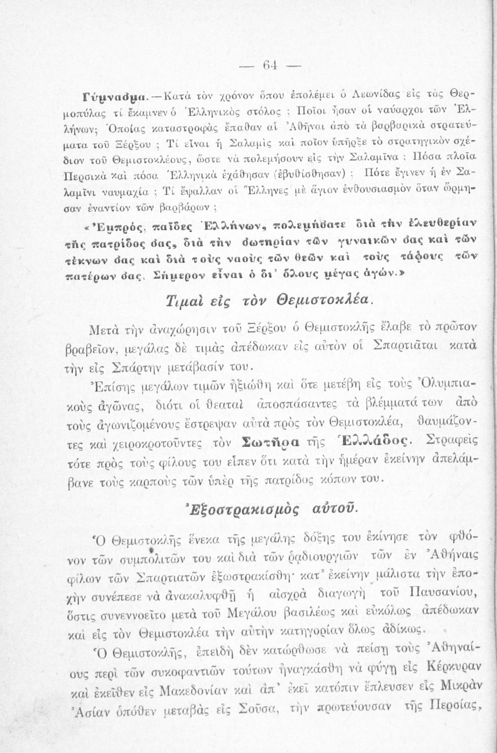 Βαθμίδα εκπαίδευσης: Πρωτοβάθμια Τάξη: Δ' Δημοτικού Μάθημα: Ιστορία Γλώσσα: Καθαρεύουσα Παρουσίαση περιεχομένου: Σχολικό εγχειρίδιο Ιστορίας Δ΄ Δημοτικού που καλύπτει το διάστημα από τους προϊστορικούς χρόνους ως την κατάληψη της Ελλάδας από τους Ρωμαίους. |