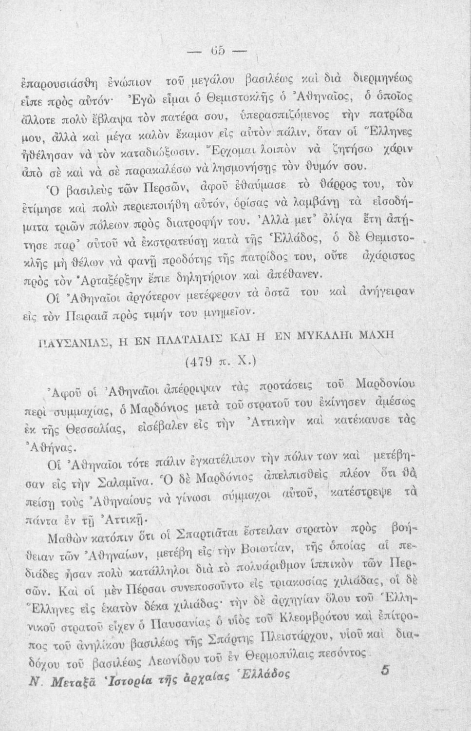 Κωδικός αναγνώρισης: 03-20561146 Τίτλος: Ιστορία της αρχαίας Ελλάδος δια τους μαθητάς της Δ΄ τάξεως των Δημοτικών Σχολείων αμφοτέρων των φύλων Συγγραφέας: Νικόλαος Μεταξάς Μέγεθος και υπόστρωμα: Σχολικό εγχειρίδιο, σκληρό εξώφυλλο, 138 σελίδες. Σκίτσα (ασπρόμαυρα). |