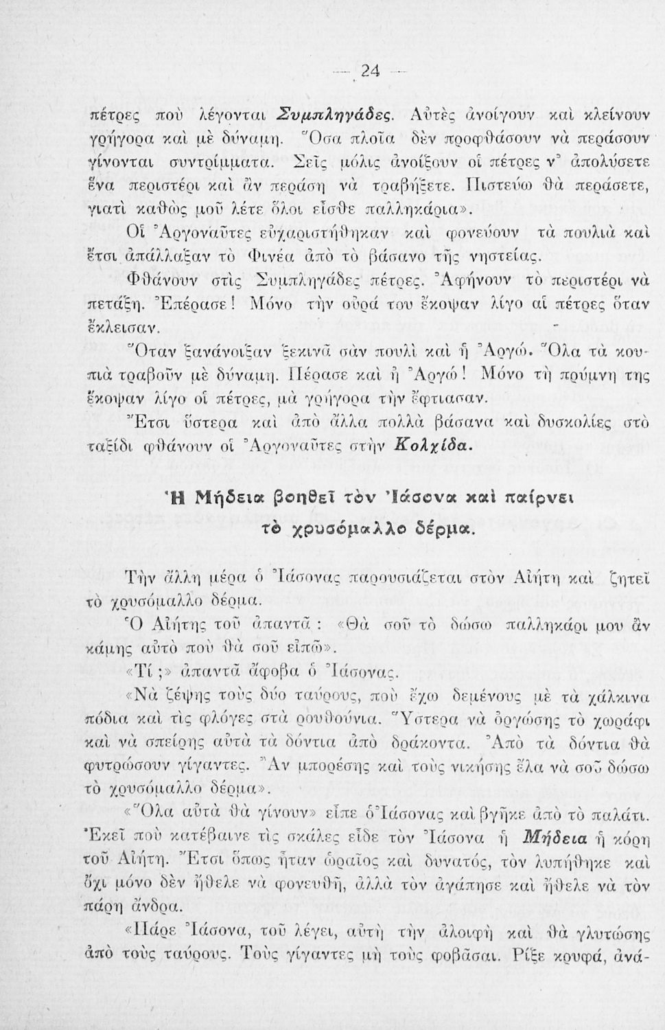 Αναγνωστικό Γ' Δημοτικού που περιέχει πεζά και ποιήματα εμπνευσμένα από τη θρησκευτική, εθνική, κοινωνική και ατομική ζωή, και την ελληνική φύση, ιστορία και μυθολογία.