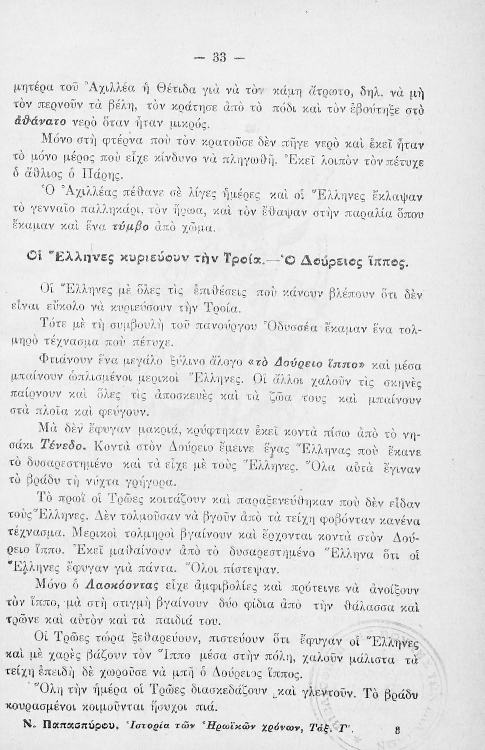 Τίτλος: Νέα Ιστορία των Ηρωικών Χρόνων. Τάξη Τρίτη (και Γ' - Δ') του Δημοτικού Σχολείου