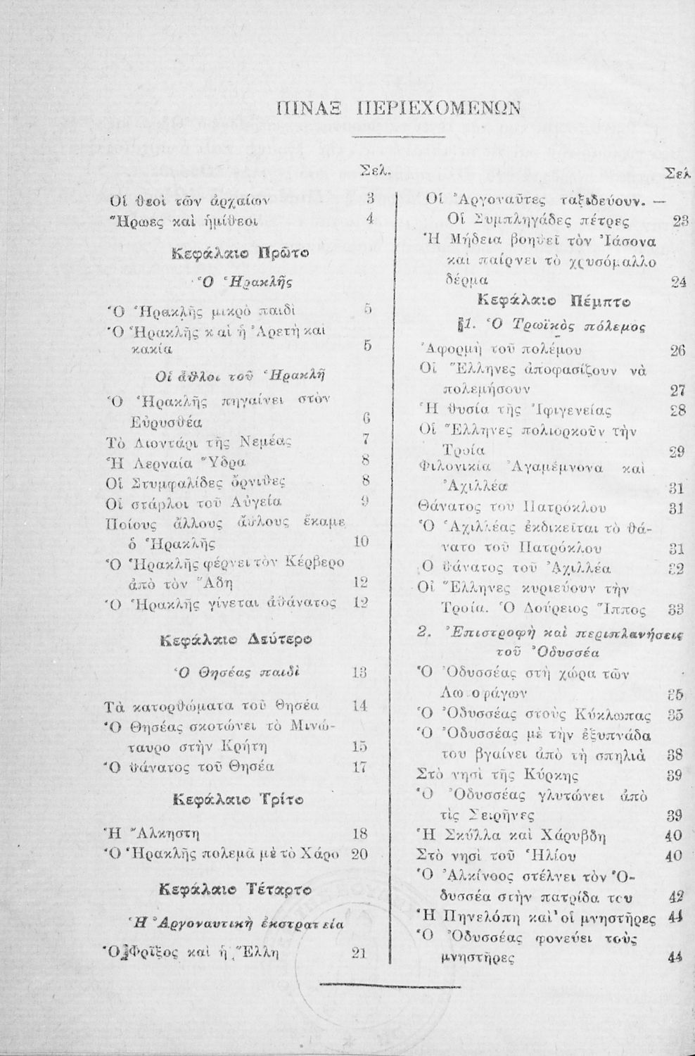 Μαθητικό βοήθημα Γ' και Δ΄ Δημοτικού για το μάθημα της Ιστορίας. Αναφέρεται στην αρχαία ελληνική μυθολογία. Τους Θεούς του Ολύμπου, τους μυθικούς ήρωες, την αργοναυτική εκστρατεία, τον Τρωικό πόλεμο και κλείνει με την Οδύσσεια.