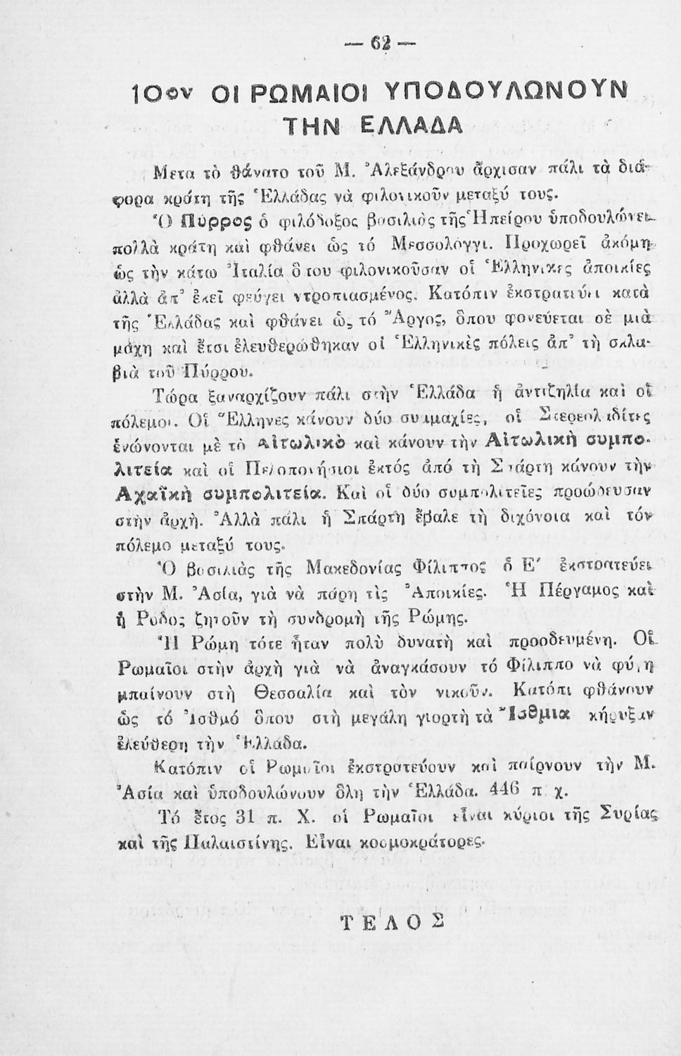 Μαθητικό βοήθημα Ιστορίας. Γ΄ και Δ΄ Δημοτικού Παρθεναγωγείου που καλύπτει το διάστημα από τους προϊστορικούς χρόνους ως τη μάχη της Μαντίνειας