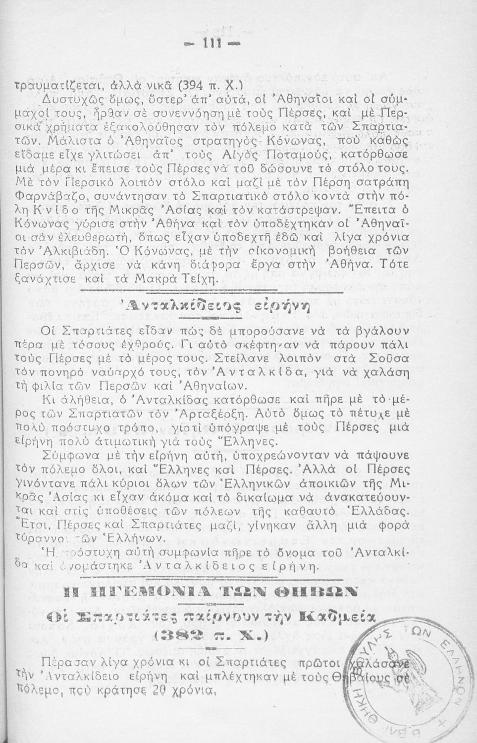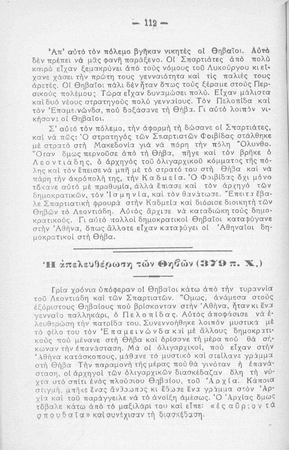Μαθητικό βοήθημα Ιστορίας. Γ΄ και Δ΄ Δημοτικού Παρθεναγωγείου που καλύπτει το διάστημα από τους προϊστορικούς χρόνους ως τη μάχη της Μαντίνειας