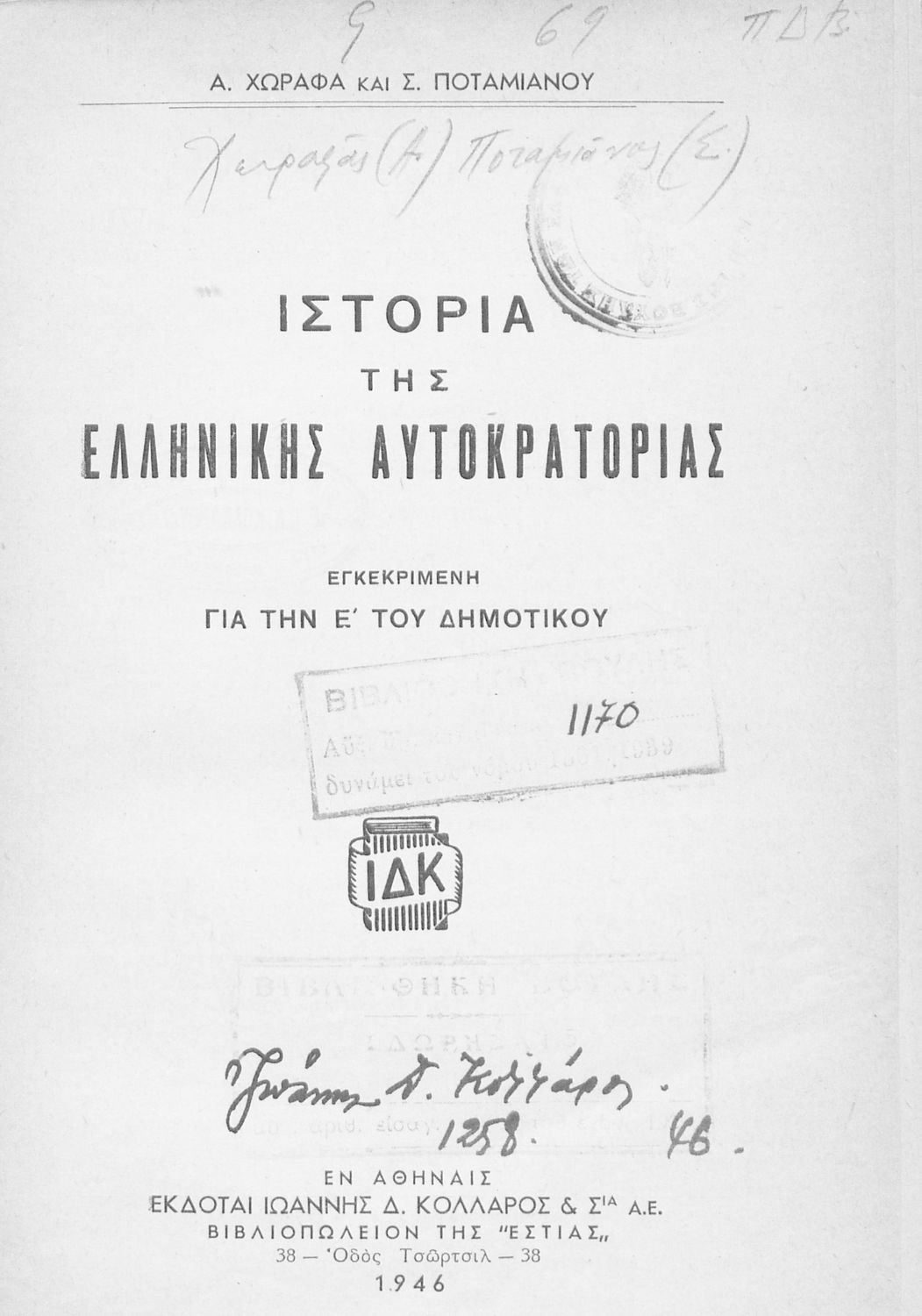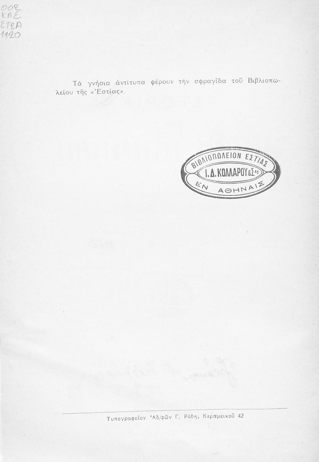 Εκδότης: Ιωάννης Δ. Κολλάρος και ΣΙΑ, Βιβλιοπωλείο της "Εστίας"