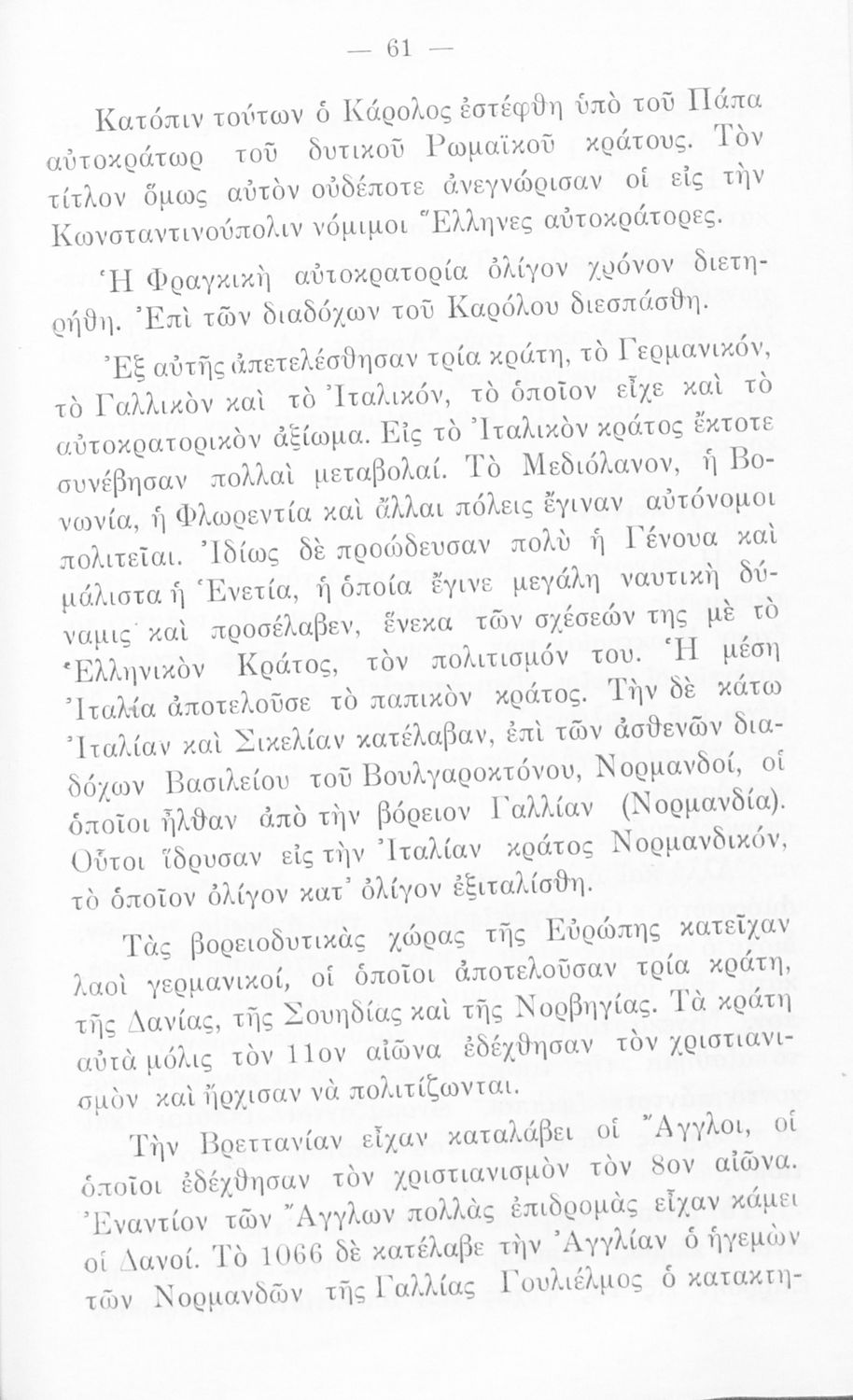 Βαθμίδα εκπαίδευσης: Πρωτοβάθμια Τάξη: Ε' Δημοτικού Μάθημα: Ιστορία Γλώσσα: Απλή καθαρεύουσα Παρουσίαση περιεχομένου: Σχολικό εγχειρίδιο Ιστορίας Ε΄ Δημοτικού που καλύπτει την περίοδο από την ίδρυση της ρωμαϊκής αυτοκρατορίας ως την άλωση της Κωνσταντινούπολης και την Αναγέννηση στην Ευρώπη. |