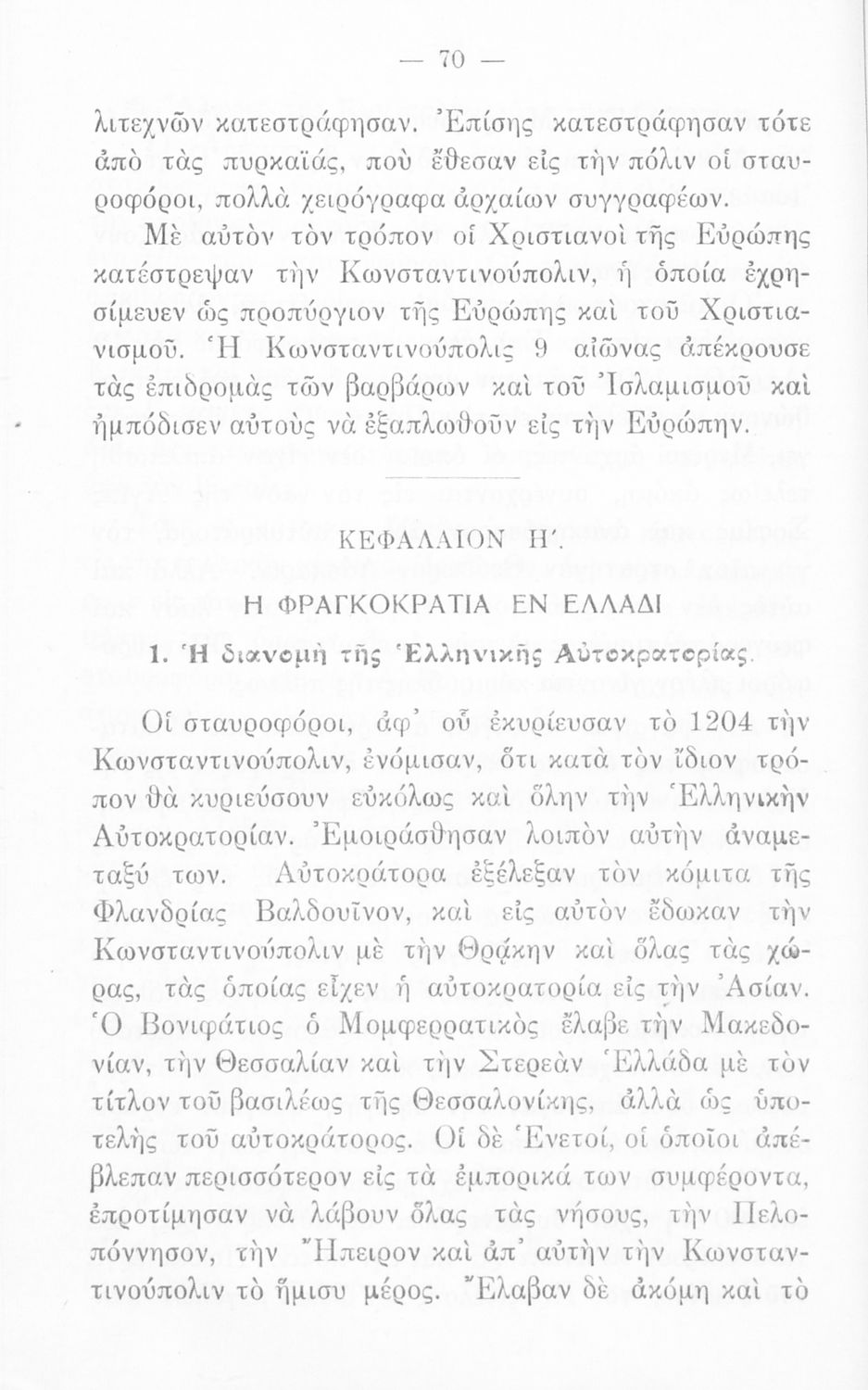 LDR 01227 2200217 4500 035 ## _a03-20561167 040 ## _aΒιβλιοθήκη της Βουλής των Ελλήνων 041 ## _ael 100 ## _aΑντ. Χωραφάς 110 ## _a20561167 245 0# _aΙστορία της Ελληνικής Αυτοκρατορίας 250 ## _a2η Έκδοση 260 ## _aΑθήνα _bΙωάννης Δ. Κολλάρος και ΣΙΑ, Βιβλιοπωλείο της "Εστίας" _c1934 300 ## _a119 _bΣκίτσα και εικόνες (έγχρωμα) 520 ## _aΣχολικό εγχειρίδιο Ιστορίας Ε΄ Δημοτικού που καλύπτει την περίοδο από την ίδρυση της ρωμαϊκής αυτοκρατορίας ως την άλωση της Κωνσταντινούπολης και την Αναγέννηση στην Ευρώπη. 521 ## _aΕ' Δημοτικού 522 ## _aΕλλάδα 546 ## _aΑπλή καθαρεύουσα 563 ## _aΜαλακό Εξώφυλλο 583 ## _a51231,51232, 20-8-1934 _c1934 650 #4 _aΘεοδόσιος _aΙουστινιανός Φράγκοι _aΣταυροφορίες _aΣχίσμα εκκλησιών