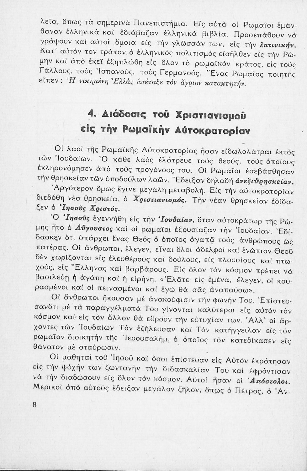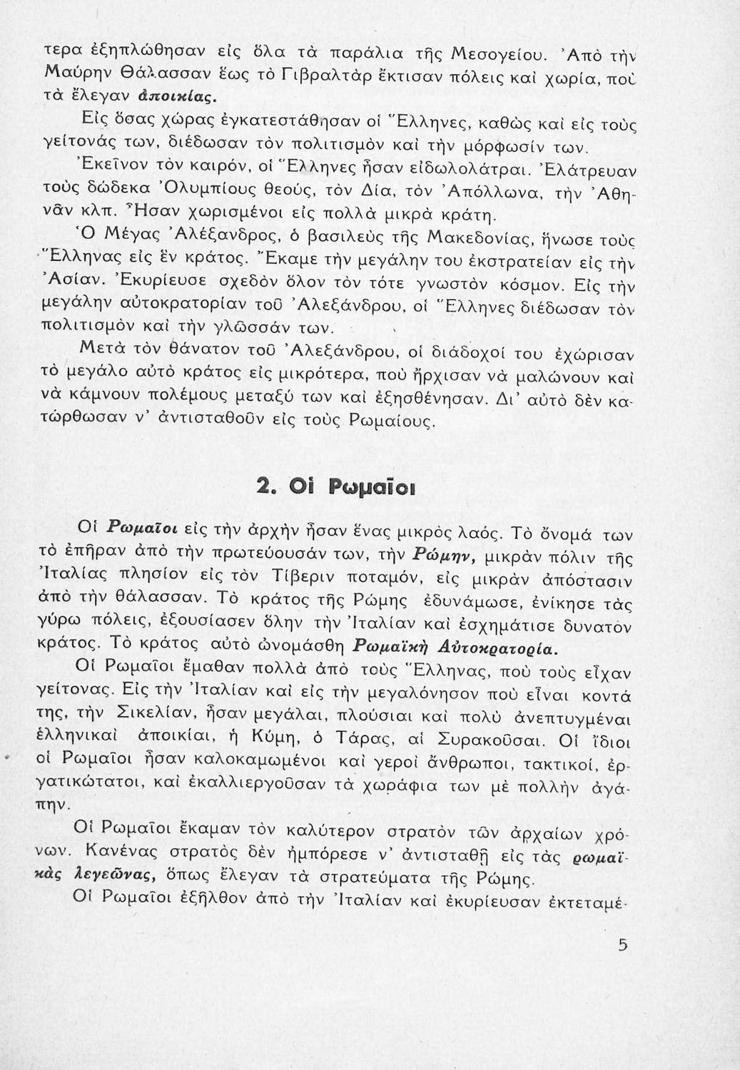 Βαθμίδα εκπαίδευσης: Πρωτοβάθμια Τάξη: Ε' Δημοτικού Μάθημα: Ιστορία Γλώσσα: Απλή καθαρεύουσα Παρουσίαση περιεχομένου: Μαθητικό βοήθα Ιστορίας Ε΄ Δημοτικού που καλύπτει την περίοδο από την ίδρυση της ρωμαϊκής αυτοκρατορίας ως την άλωση της Κωνσταντινούπολης και την Αναγέννηση στην Ευρώπη. Αναφέρεται στην πνευματική κίνηση της εποχής και τις μεγάλες ανακαλύψεις. |