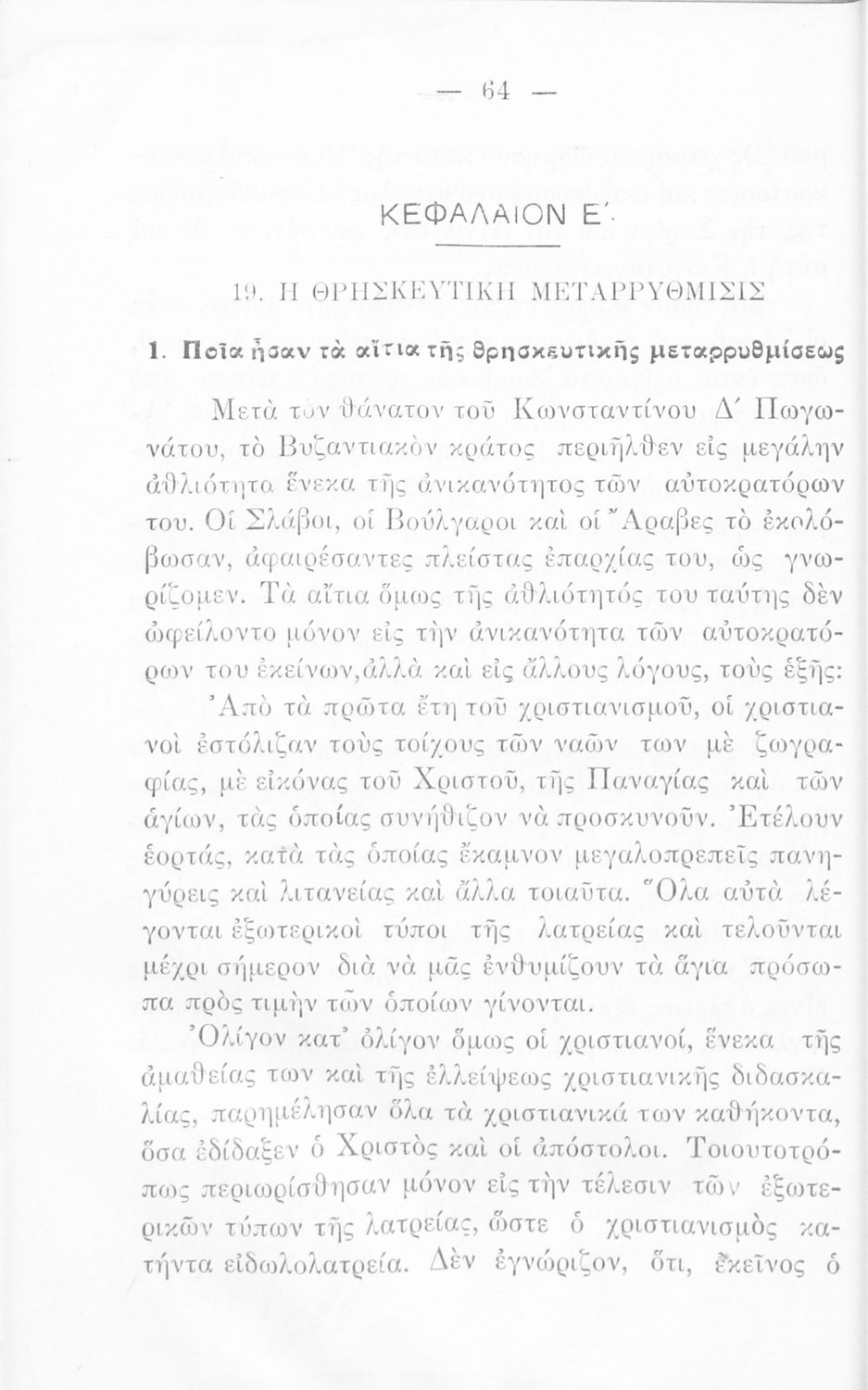Βαθμίδα εκπαίδευσης: Πρωτοβάθμια Τάξη: Ε' Δημοτικού Μάθημα: Ιστορία Γλώσσα: Καθαρεύουσα Παρουσίαση περιεχομένου: Σχολικό εγχειρίδιο Ιστορίας Ε΄ Γυμνασίου που καλύπτει την περίοδο από την άνοδο του Μ. Κωνσταντίνου στο θρόνο ως την άλωση της Κωνσταντινούπολης. |
