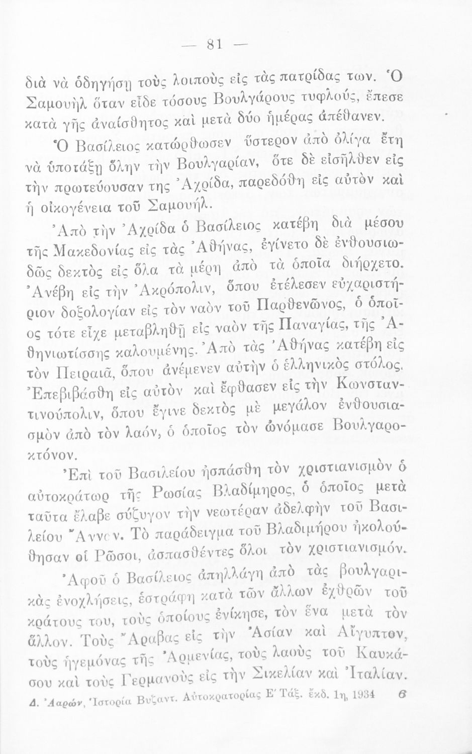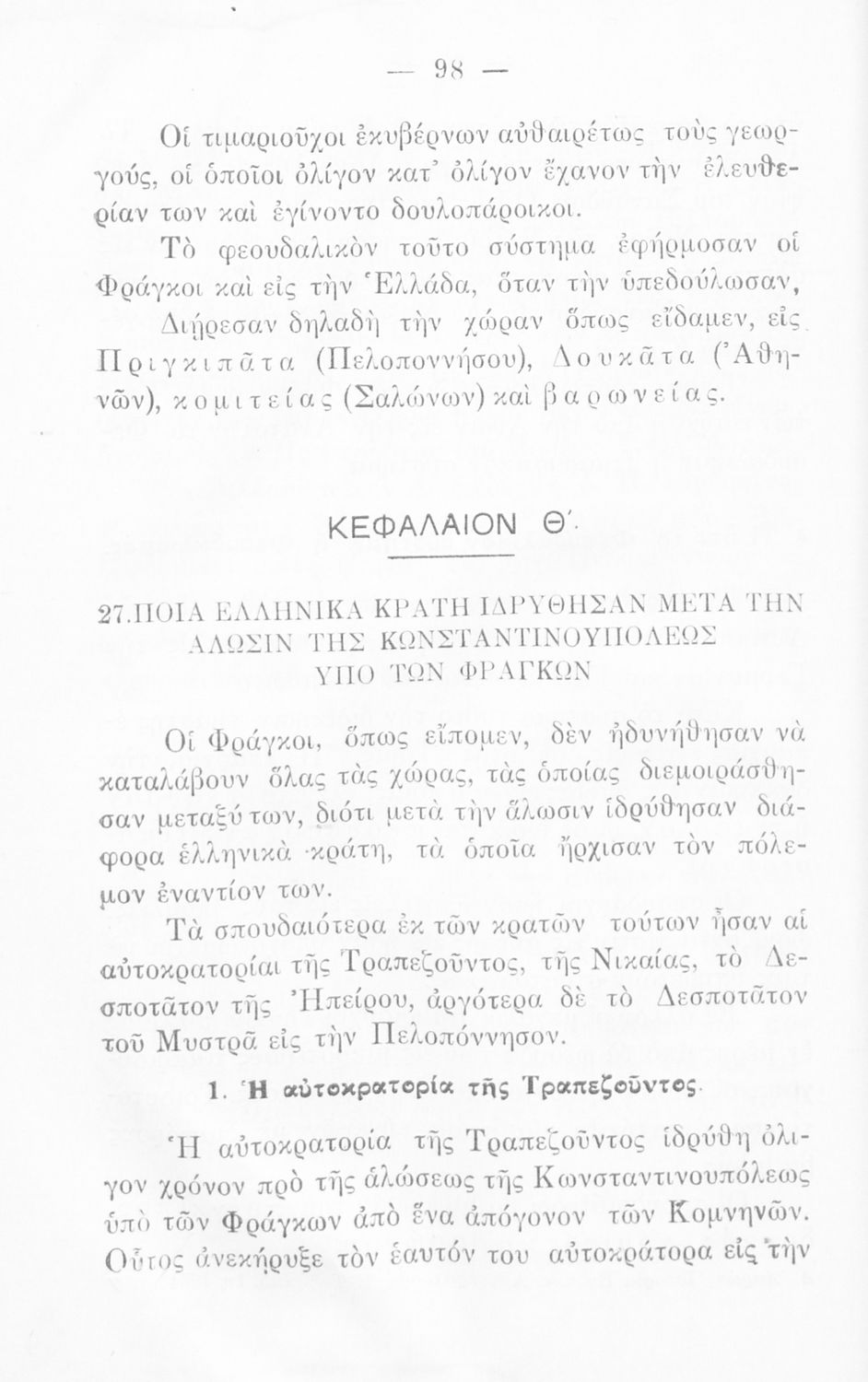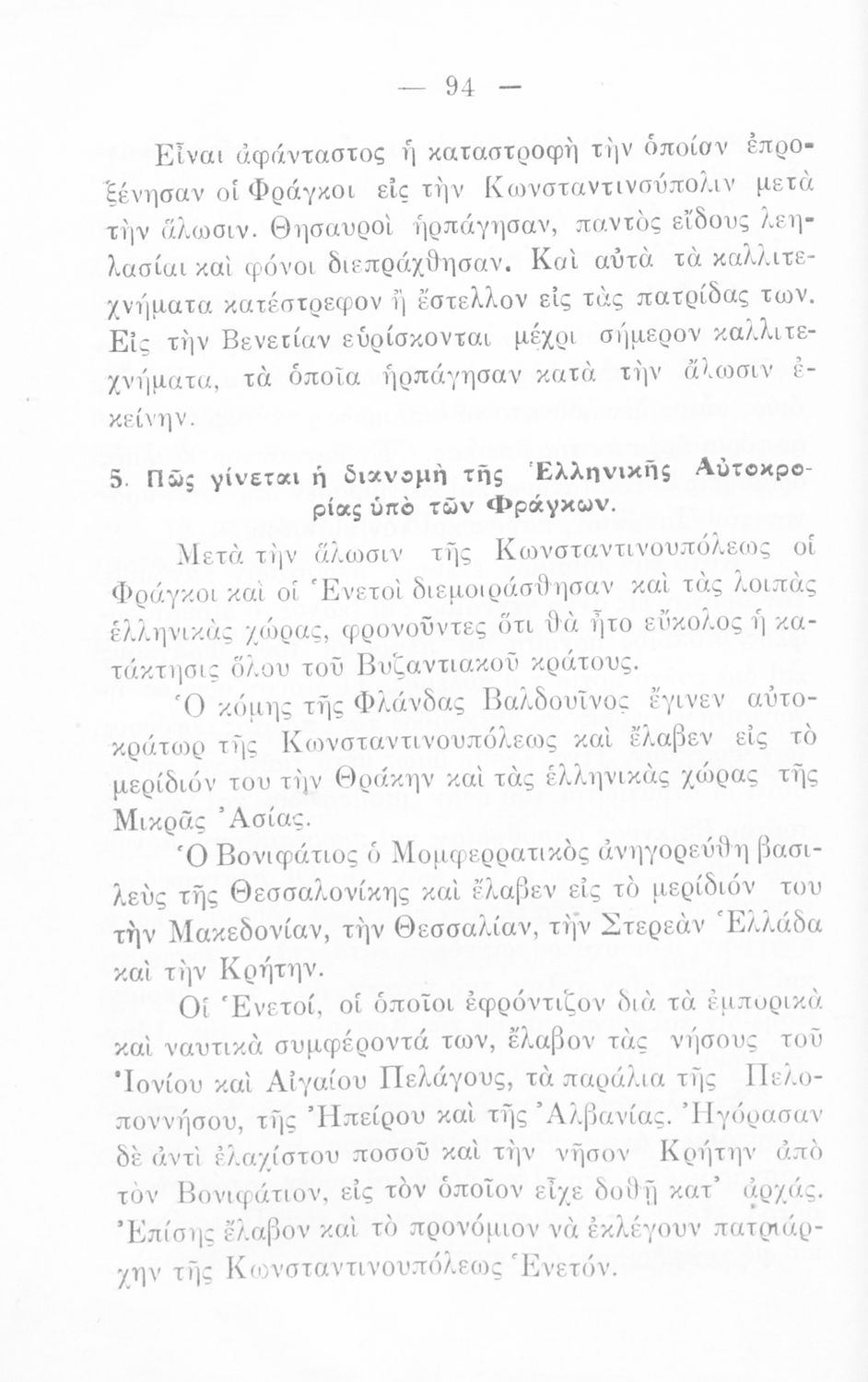 Βαθμίδα εκπαίδευσης: Πρωτοβάθμια Τάξη: Ε' Δημοτικού Μάθημα: Ιστορία Γλώσσα: Καθαρεύουσα Παρουσίαση περιεχομένου: Σχολικό εγχειρίδιο Ιστορίας Ε΄ Γυμνασίου που καλύπτει την περίοδο από την άνοδο του Μ. Κωνσταντίνου στο θρόνο ως την άλωση της Κωνσταντινούπολης. |