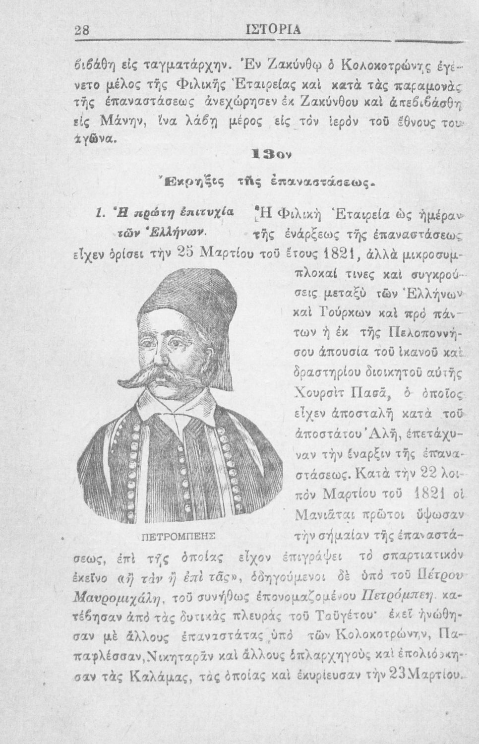 Σχολικό εγχειρίδιο της Γ΄ Δημοτικού για το μάθημα της Ιστορίας. Αναφέρεται στα ιστορικά γεγονότα της Νεώτερης Ελλάδας από τα χρόνια των ελληνορθόδοξων κοινοτήτων στην Οθωμανική Αυτοκρατορία, την προετοιμασία της επανάστασης του 1821. Αναλύει διεξοδικά τα χρόνια της Ελληνικής Επανάστασης. Η γλώσσα είναι δημοτική και το ύφος απλό. Διαθέτει προσωπογραφίες των ηρώων.