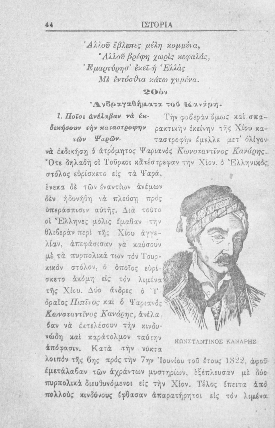 Σχολικό εγχειρίδιο της Γ΄ Δημοτικού για το μάθημα της Ιστορίας. Αναφέρεται στα ιστορικά γεγονότα της Νεώτερης Ελλάδας από τα χρόνια των ελληνορθόδοξων κοινοτήτων στην Οθωμανική Αυτοκρατορία, την προετοιμασία της επανάστασης του 1821. Αναλύει διεξοδικά τα χρόνια της Ελληνικής Επανάστασης. Η γλώσσα είναι δημοτική και το ύφος απλό. Διαθέτει προσωπογραφίες των ηρώων.