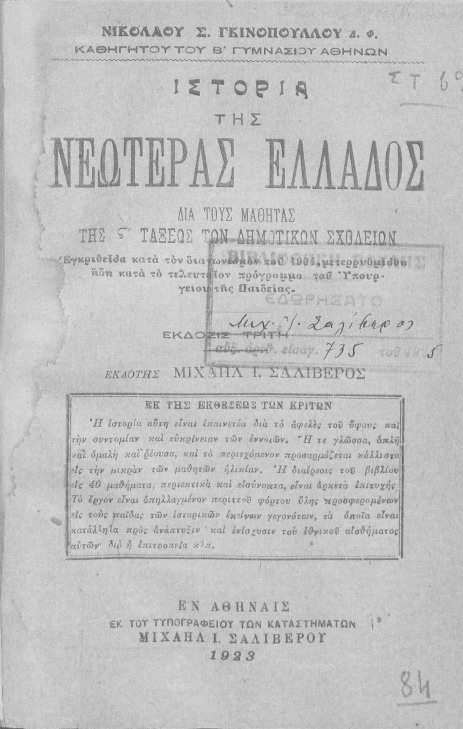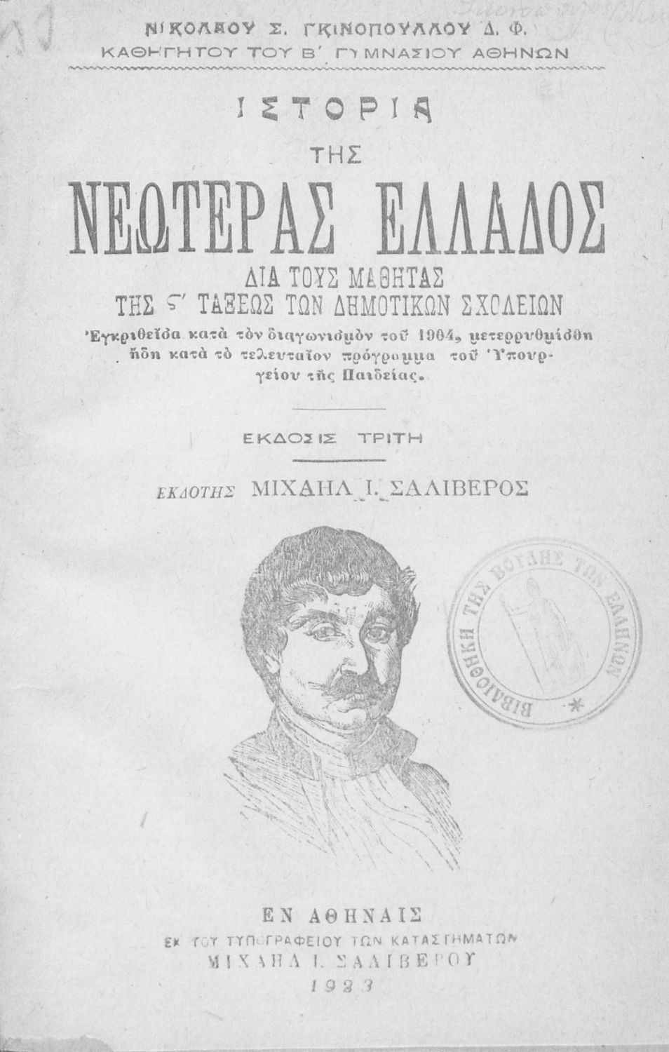 Τίτλος: Ιστορία της Νεωτέρας Ελλάδος. ΣΤ΄ τάξεως Δημοτικού Σχολείου