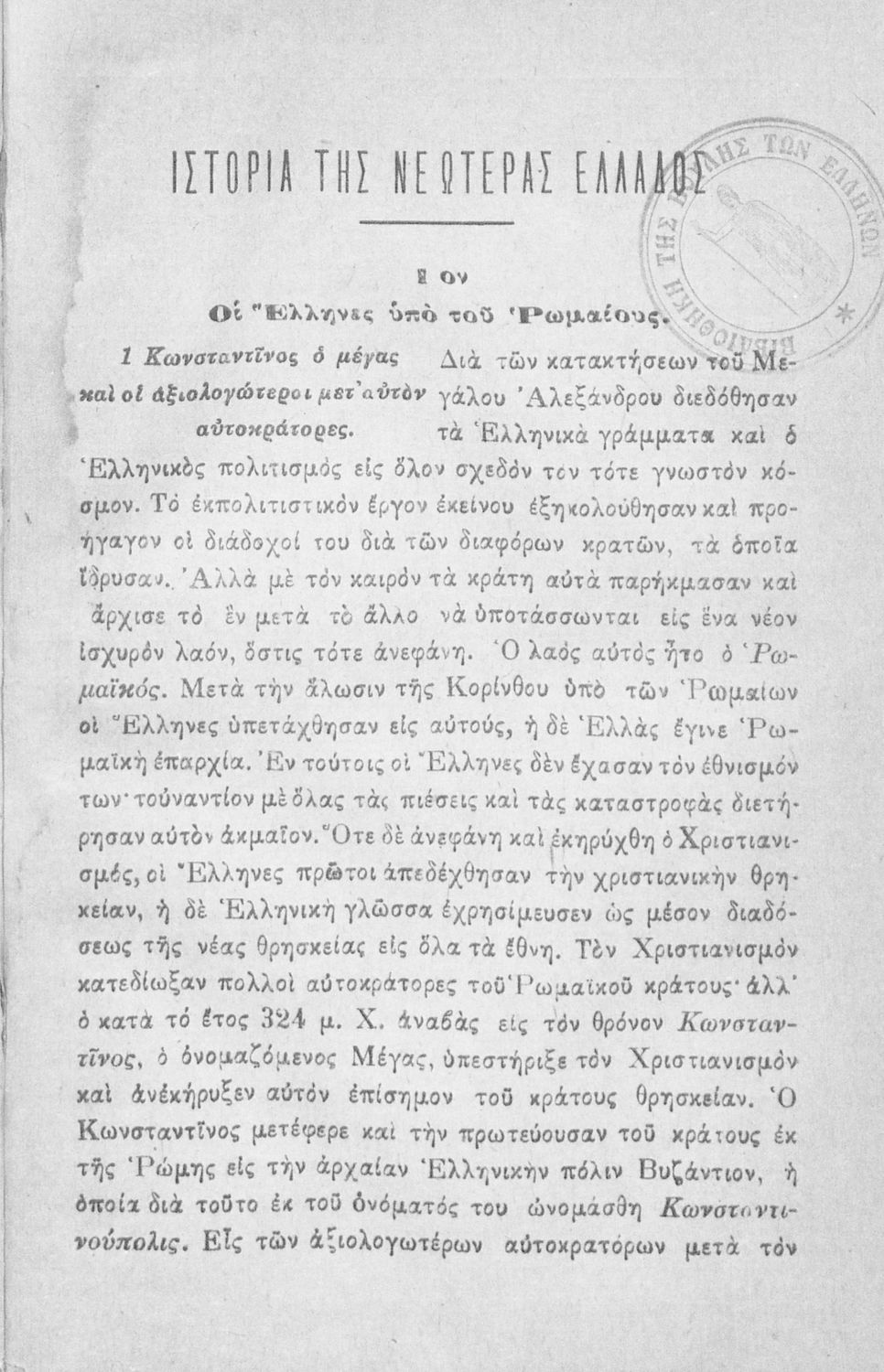 Ιστορία της Νεωτέρας Ελλάδος. ΣΤ΄ τάξεως Δημοτικού Σχολείου