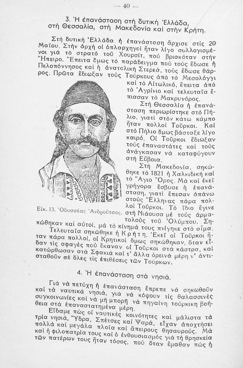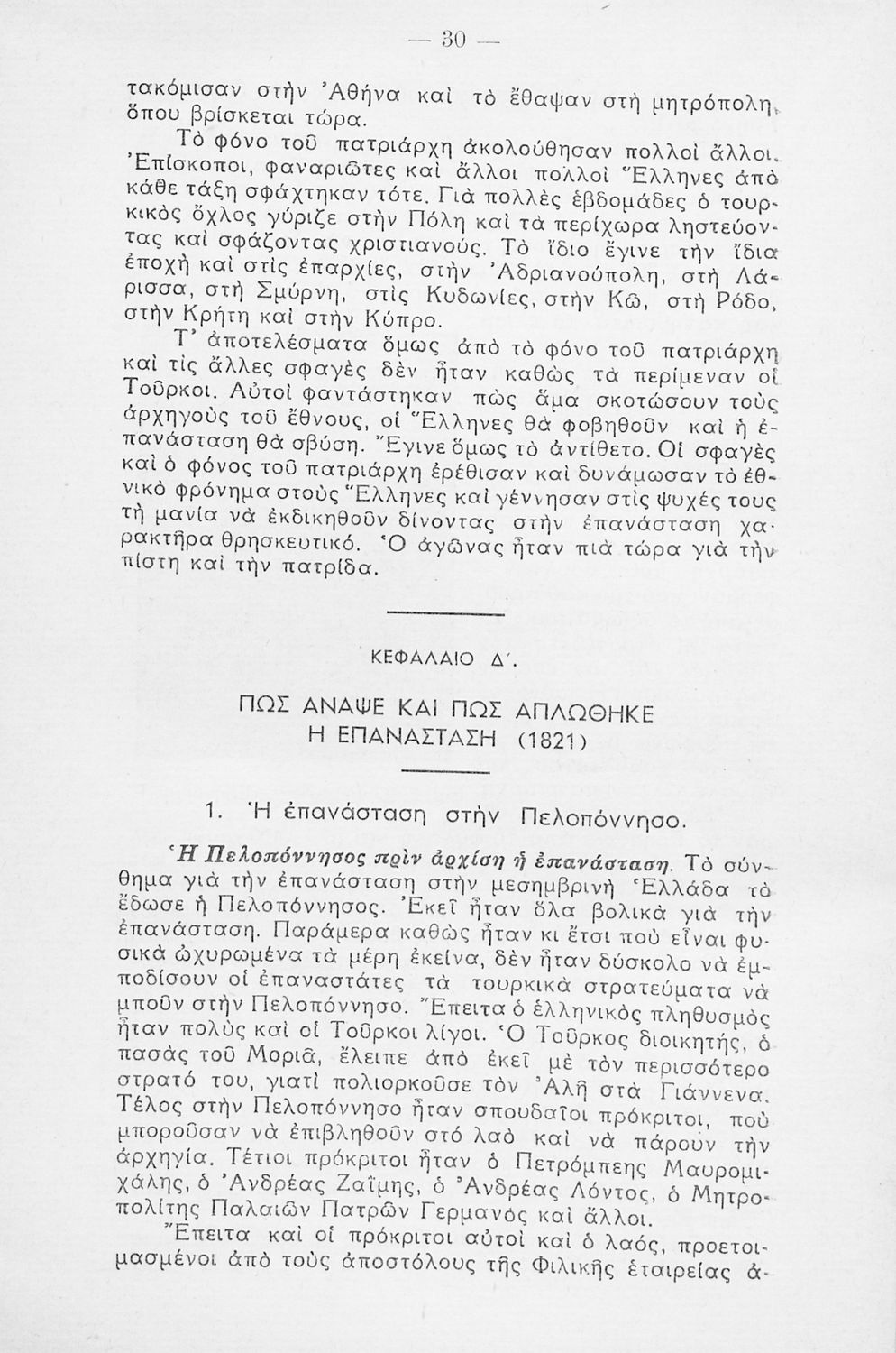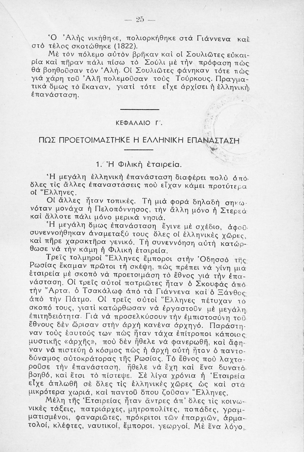 520 ## _aΤο σύγγραμμα ήταν σχολικό εγχειρίδιο για μάθημα της Ιστορίας στο Δημοτικό. Αναφέρεται στα ιστορικά γεγονότα από την περίοδο της Οθωμανικής Αυτοκρατορίας και τη διοίκηση των ελληνικών κοινοτήτων, την οργάνωση της Ελληνικής Επανάστασης και μετά αναφέρεται διεξοδικά στα γεγονότα της Επανάστασης του 1821. Έπειτα στα χρόνια του ανεξάρτητου ελληνικού κράτους και την ανάπτυξη και τις πολιτικές της Μ. Ιδέας και του Αλυτρωτισμού.