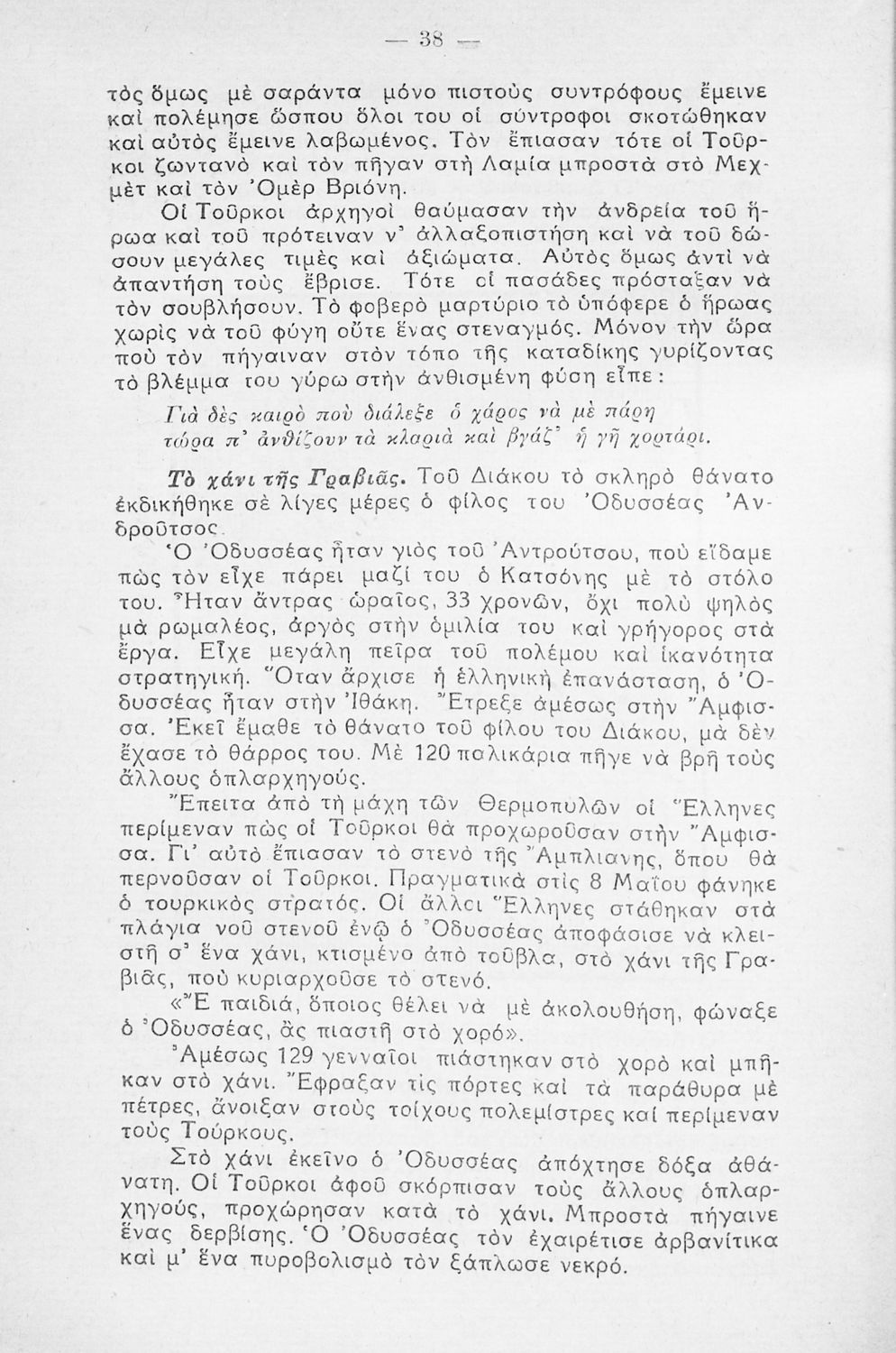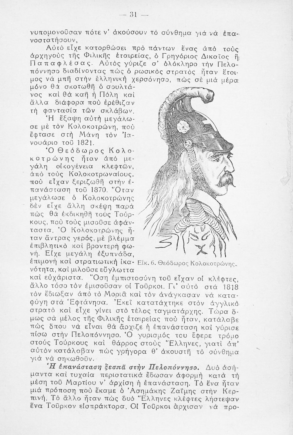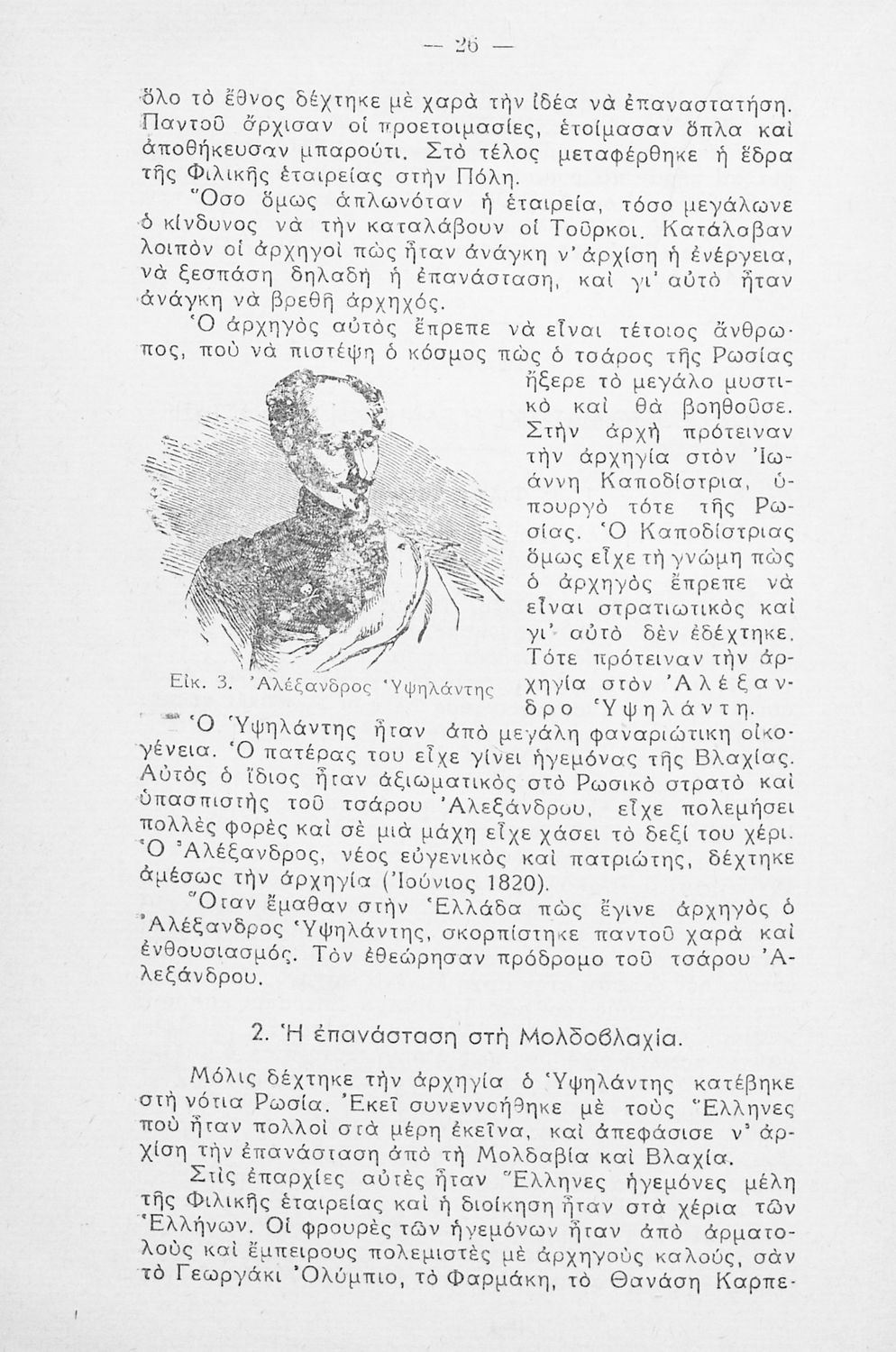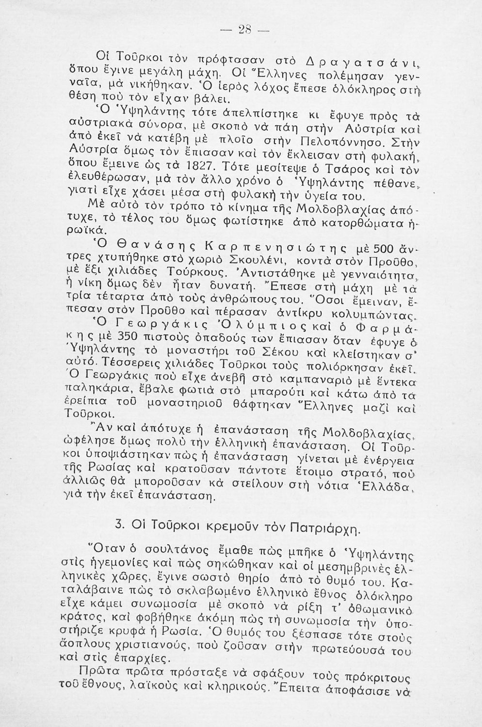 520 ## _aΤο σύγγραμμα ήταν σχολικό εγχειρίδιο για μάθημα της Ιστορίας στο Δημοτικό. Αναφέρεται στα ιστορικά γεγονότα από την περίοδο της Οθωμανικής Αυτοκρατορίας και τη διοίκηση των ελληνικών κοινοτήτων, την οργάνωση της Ελληνικής Επανάστασης και μετά αναφέρεται διεξοδικά στα γεγονότα της Επανάστασης του 1821. Έπειτα στα χρόνια του ανεξάρτητου ελληνικού κράτους και την ανάπτυξη και τις πολιτικές της Μ. Ιδέας και του Αλυτρωτισμού.