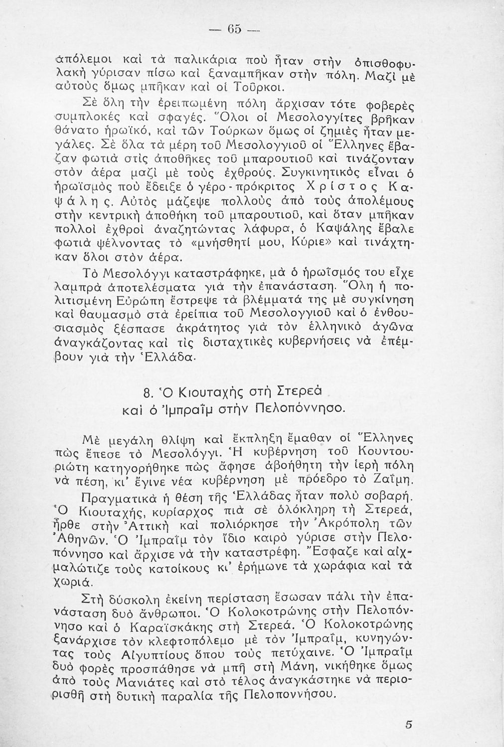 Παρουσίαση περιεχομένου: Το σύγγραμμα ήταν σχολικό εγχειρίδιο για μάθημα της Ιστορίας στο Δημοτικό. Αναφέρεται στα ιστορικά γεγονότα από την περίοδο της Οθωμανικής Αυτοκρατορίας και τη διοίκηση των ελληνικών κοινοτήτων, την οργάνωση της Ελληνικής Επανάστασης και μετά αναφέρεται διεξοδικά στα γεγονότα της Επανάστασης του 1821. Έπειτα στα χρόνια του ανεξάρτητου ελληνικού κράτους και την ανάπτυξη και τις πολιτικές της Μ. Ιδέας και του Αλυτρωτισμού.