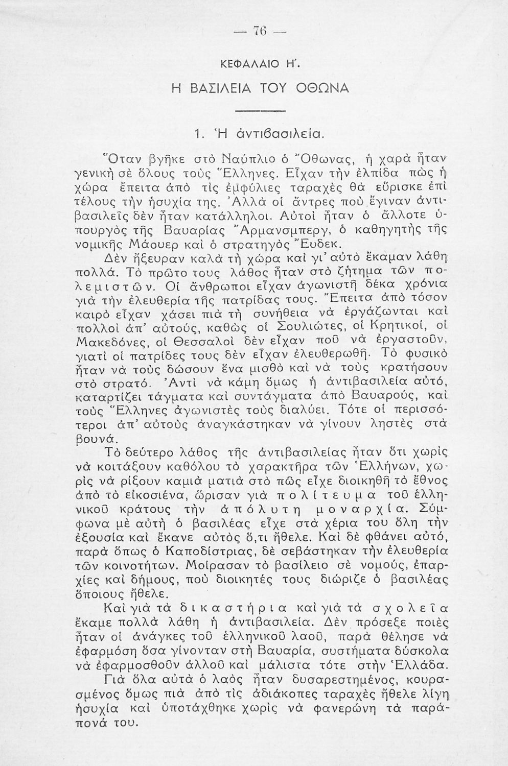 Το σύγγραμμα ήταν σχολικό εγχειρίδιο για μάθημα της Ιστορίας στο Δημοτικό. Αναφέρεται στα ιστορικά γεγονότα από την περίοδο της Οθωμανικής Αυτοκρατορίας και τη διοίκηση των ελληνικών κοινοτήτων, την οργάνωση της Ελληνικής Επανάστασης και μετά αναφέρεται διεξοδικά στα γεγονότα της Επανάστασης του 1821. Έπειτα στα χρόνια του ανεξάρτητου ελληνικού κράτους και την ανάπτυξη και τις πολιτικές της Μ. Ιδέας και του Αλυτρωτισμού.