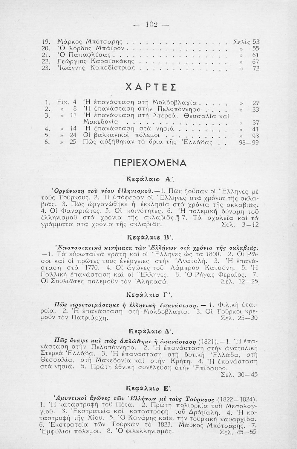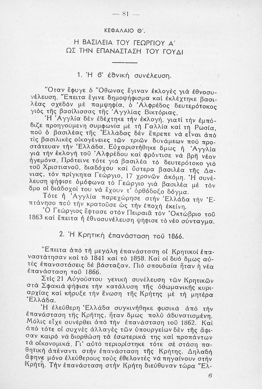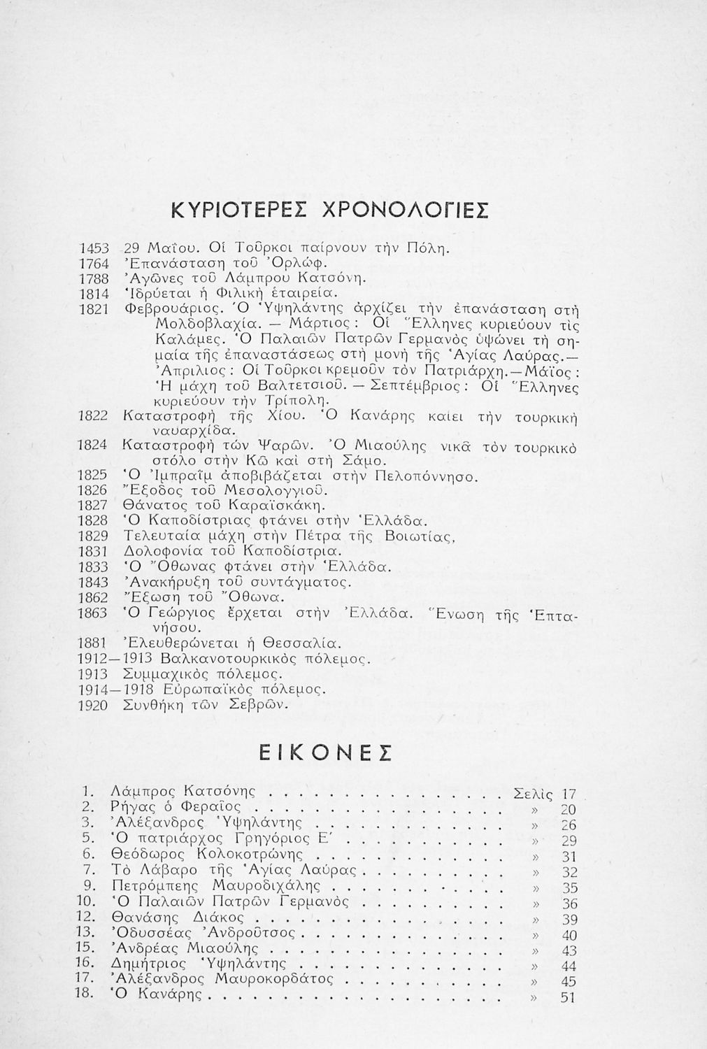 Παρουσίαση περιεχομένου: Το σύγγραμμα ήταν σχολικό εγχειρίδιο για μάθημα της Ιστορίας στο Δημοτικό. Αναφέρεται στα ιστορικά γεγονότα από την περίοδο της Οθωμανικής Αυτοκρατορίας και τη διοίκηση των ελληνικών κοινοτήτων, την οργάνωση της Ελληνικής Επανάστασης και μετά αναφέρεται διεξοδικά στα γεγονότα της Επανάστασης του 1821. Έπειτα στα χρόνια του ανεξάρτητου ελληνικού κράτους και την ανάπτυξη και τις πολιτικές της Μ. Ιδέας και του Αλυτρωτισμού.