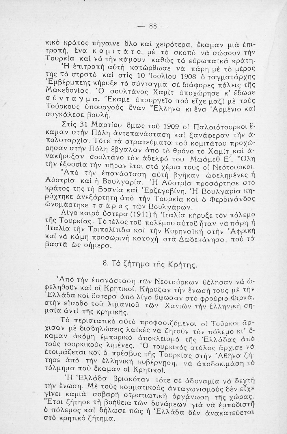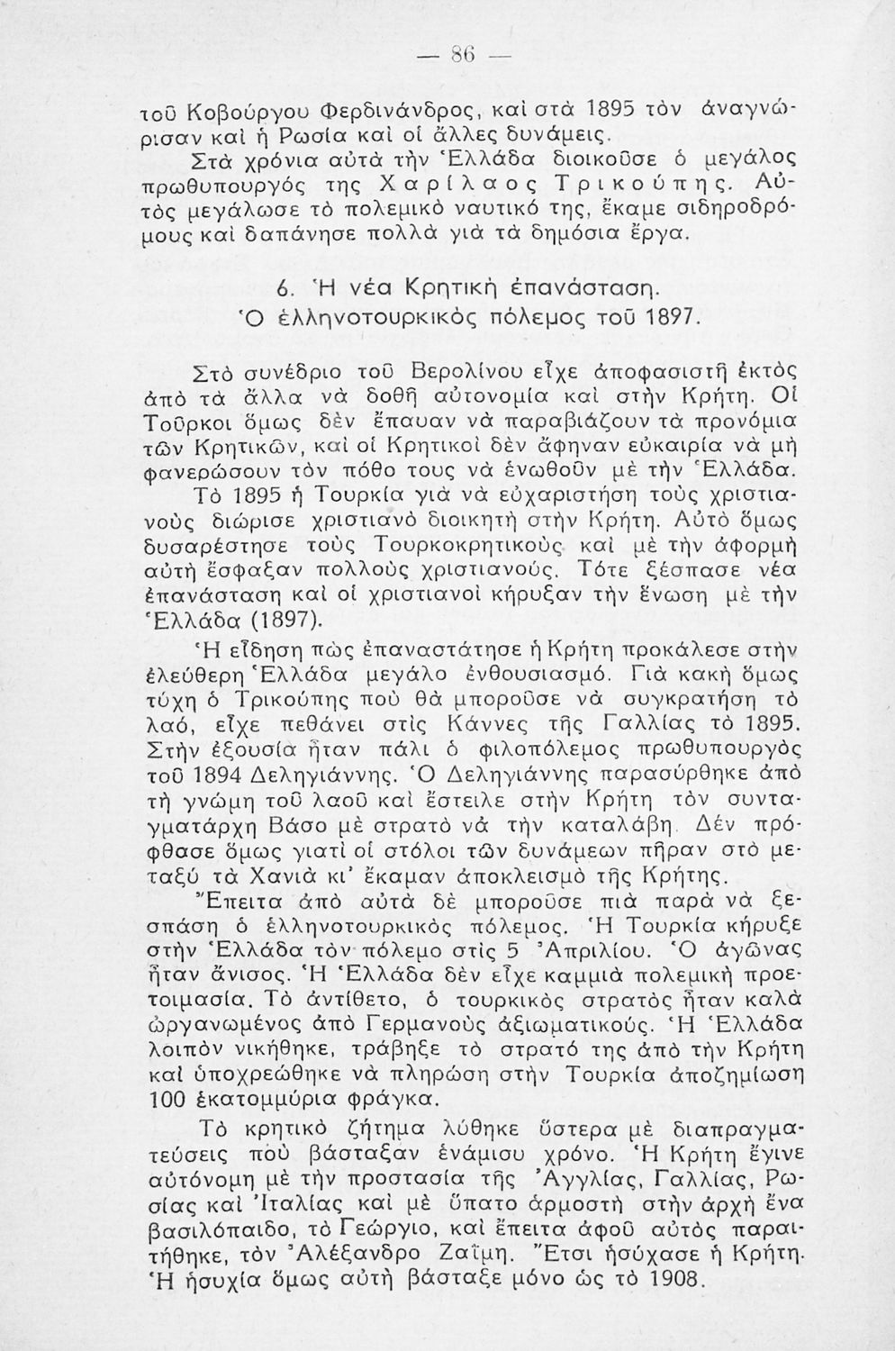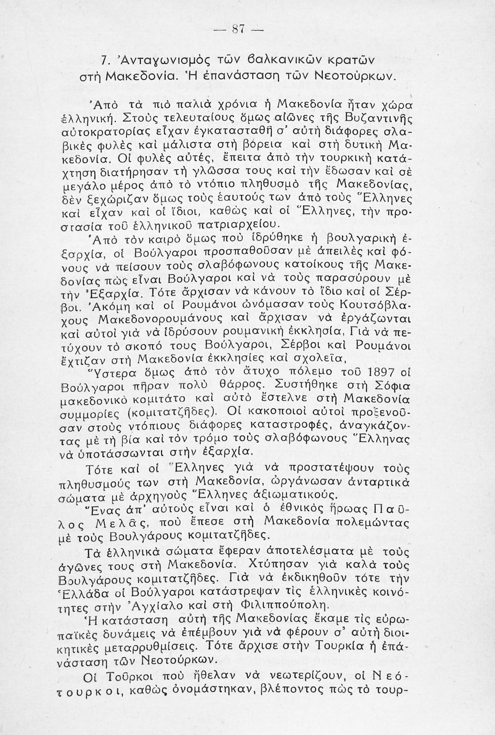 Παρουσίαση περιεχομένου: Το σύγγραμμα ήταν σχολικό εγχειρίδιο για μάθημα της Ιστορίας στο Δημοτικό. Αναφέρεται στα ιστορικά γεγονότα από την περίοδο της Οθωμανικής Αυτοκρατορίας και τη διοίκηση των ελληνικών κοινοτήτων, την οργάνωση της Ελληνικής Επανάστασης και μετά αναφέρεται διεξοδικά στα γεγονότα της Επανάστασης του 1821. Έπειτα στα χρόνια του ανεξάρτητου ελληνικού κράτους και την ανάπτυξη και τις πολιτικές της Μ. Ιδέας και του Αλυτρωτισμού.