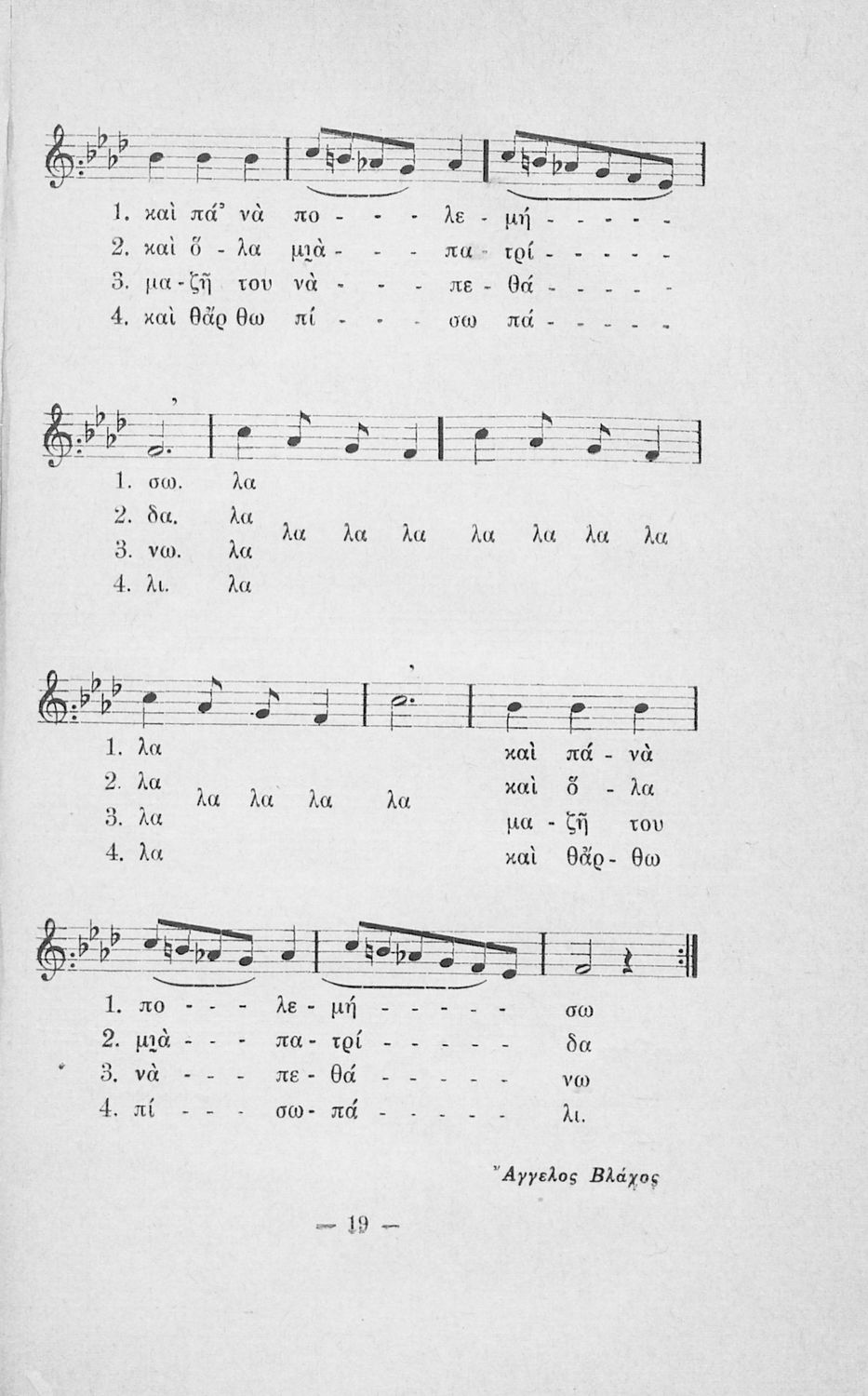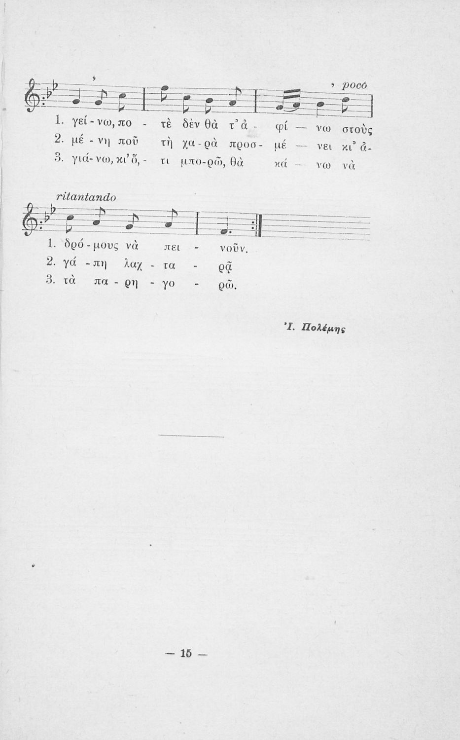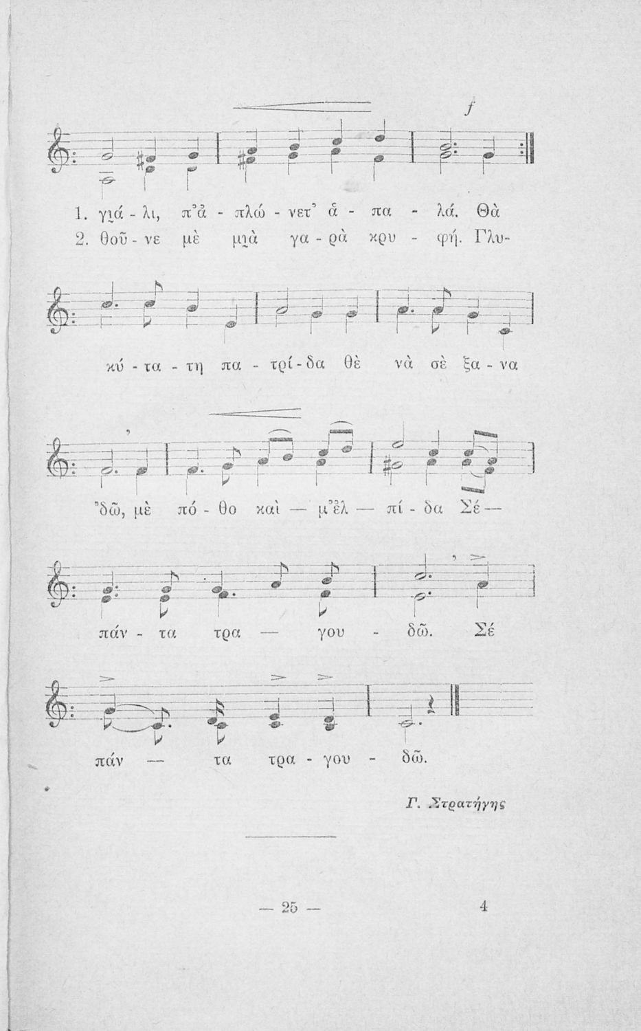 Σχολικό εγχειρίδιο του Δημοτικού για το μάθημα της Μουσικής. Περιέχει συλλογή τραγουδιών με παρτιτούρες. Μερικά από τα τραγούδια είναι μελοποιημένα ποιήματα.