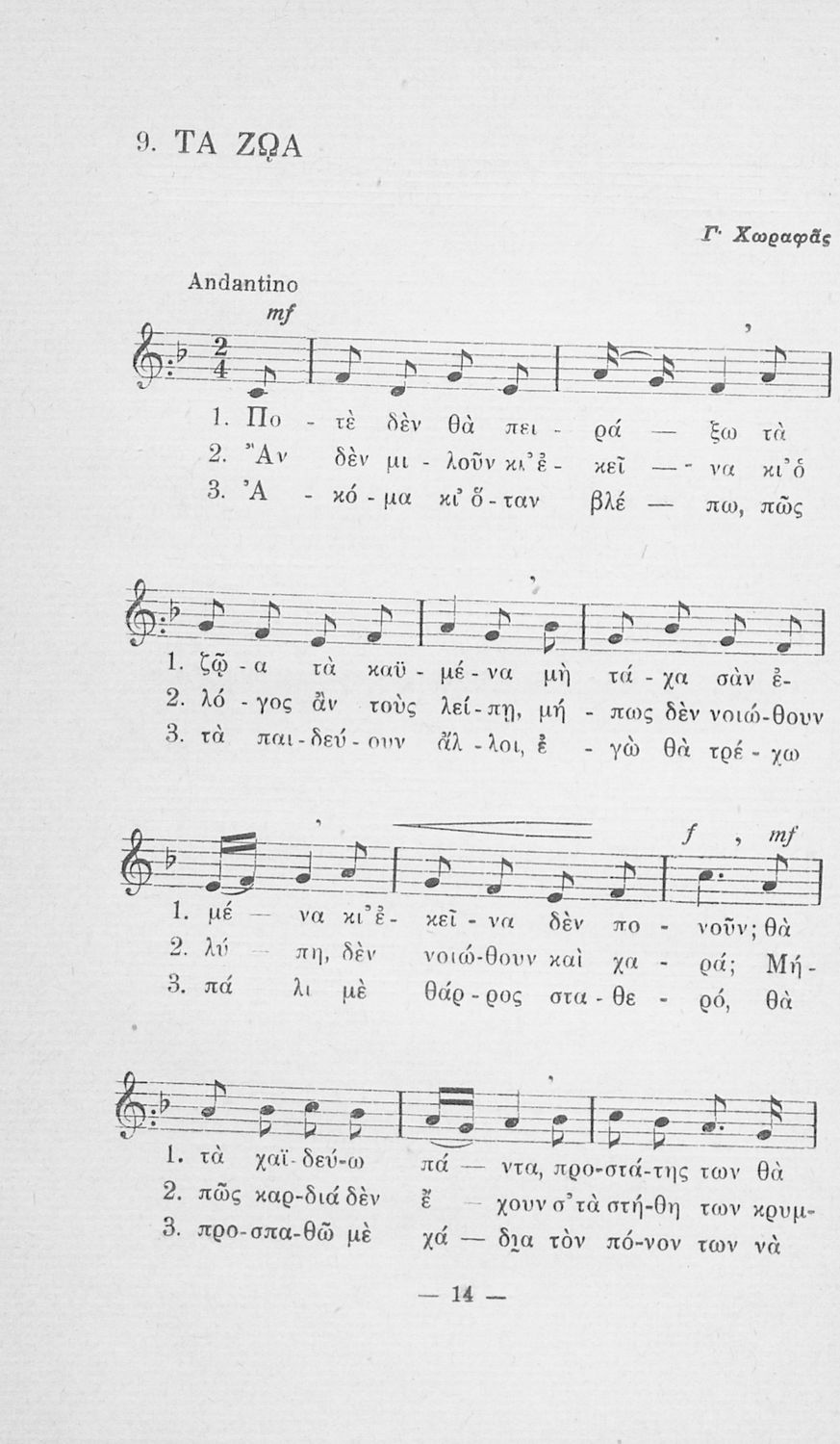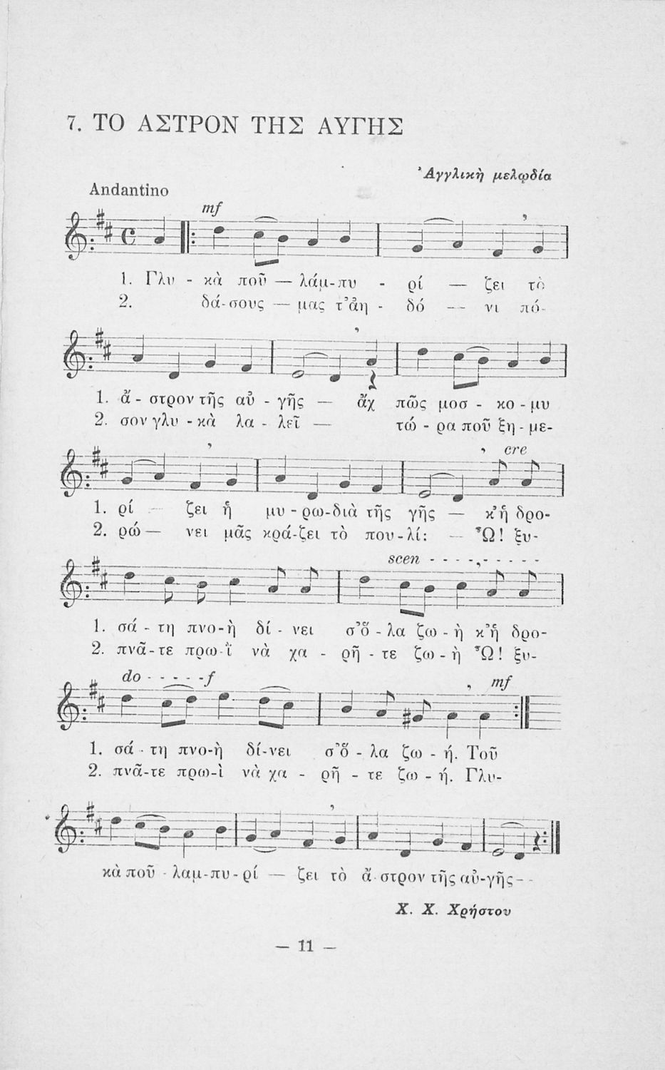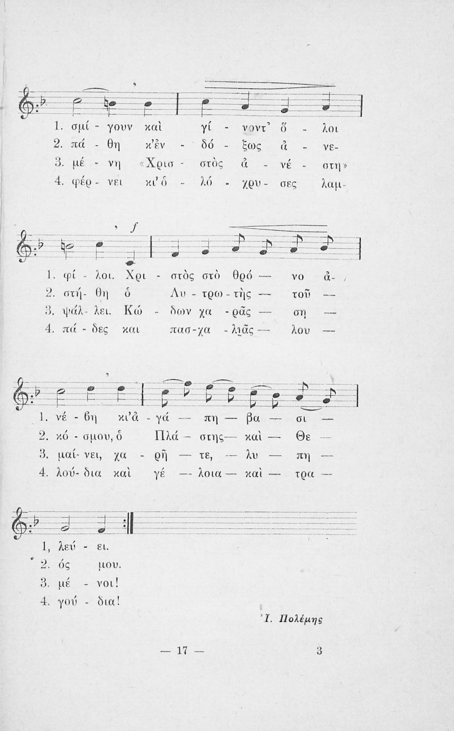 Σχολικό εγχειρίδιο του Δημοτικού για το μάθημα της Μουσικής. Περιέχει συλλογή τραγουδιών με παρτιτούρες. Μερικά από τα τραγούδια είναι μελοποιημένα ποιήματα.