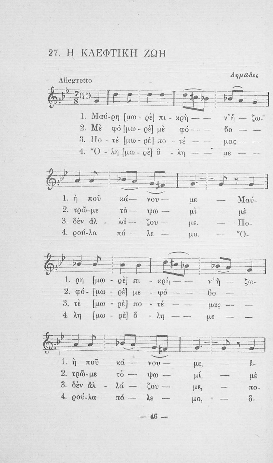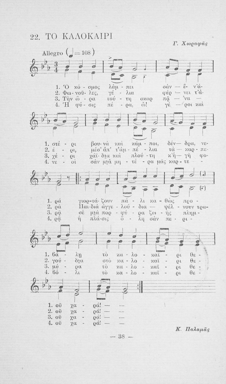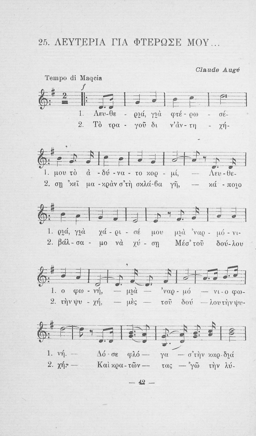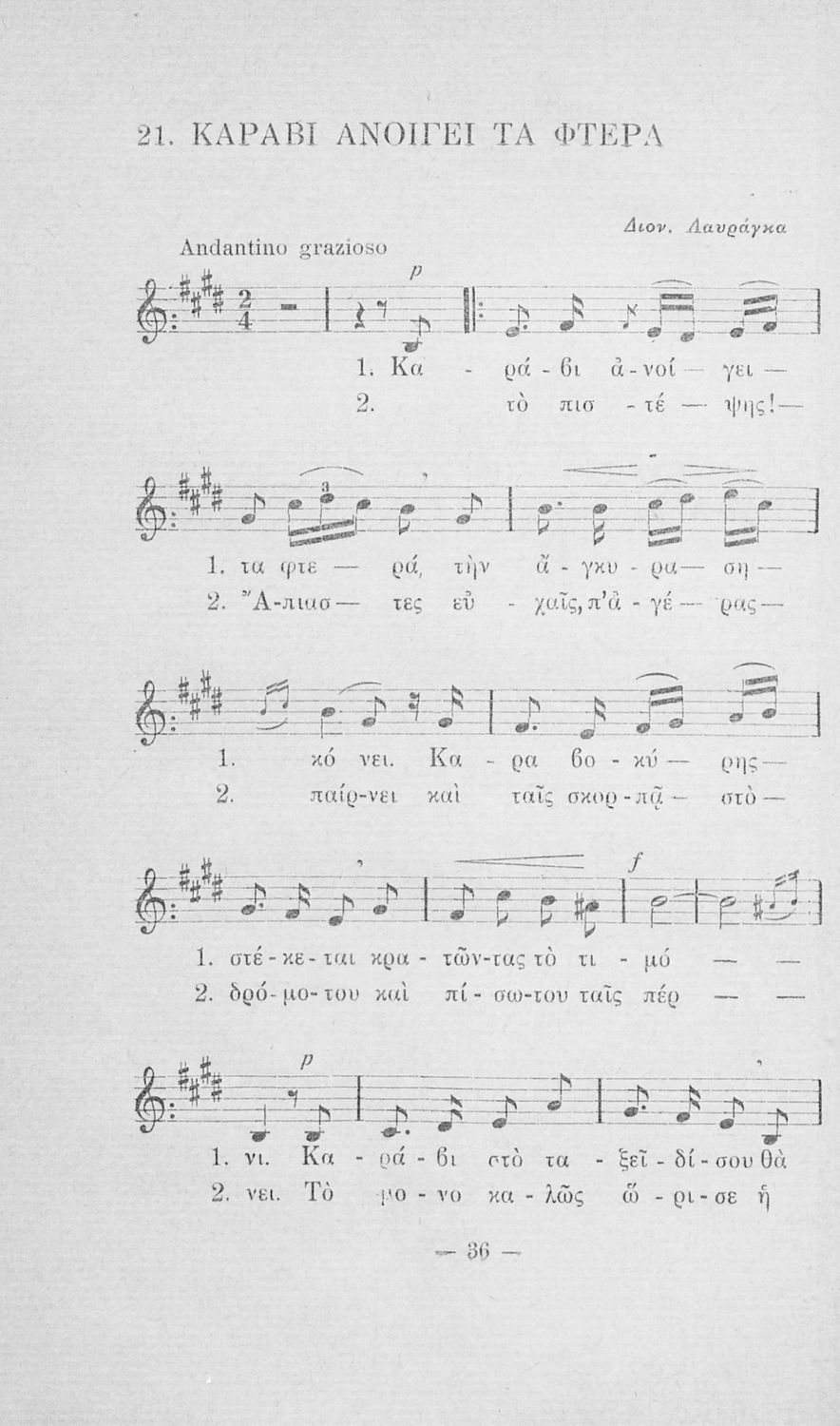 Σχολικό εγχειρίδιο του Δημοτικού για το μάθημα της Μουσικής. Περιέχει συλλογή τραγουδιών με παρτιτούρες. Μερικά από τα τραγούδια είναι μελοποιημένα ποιήματα.