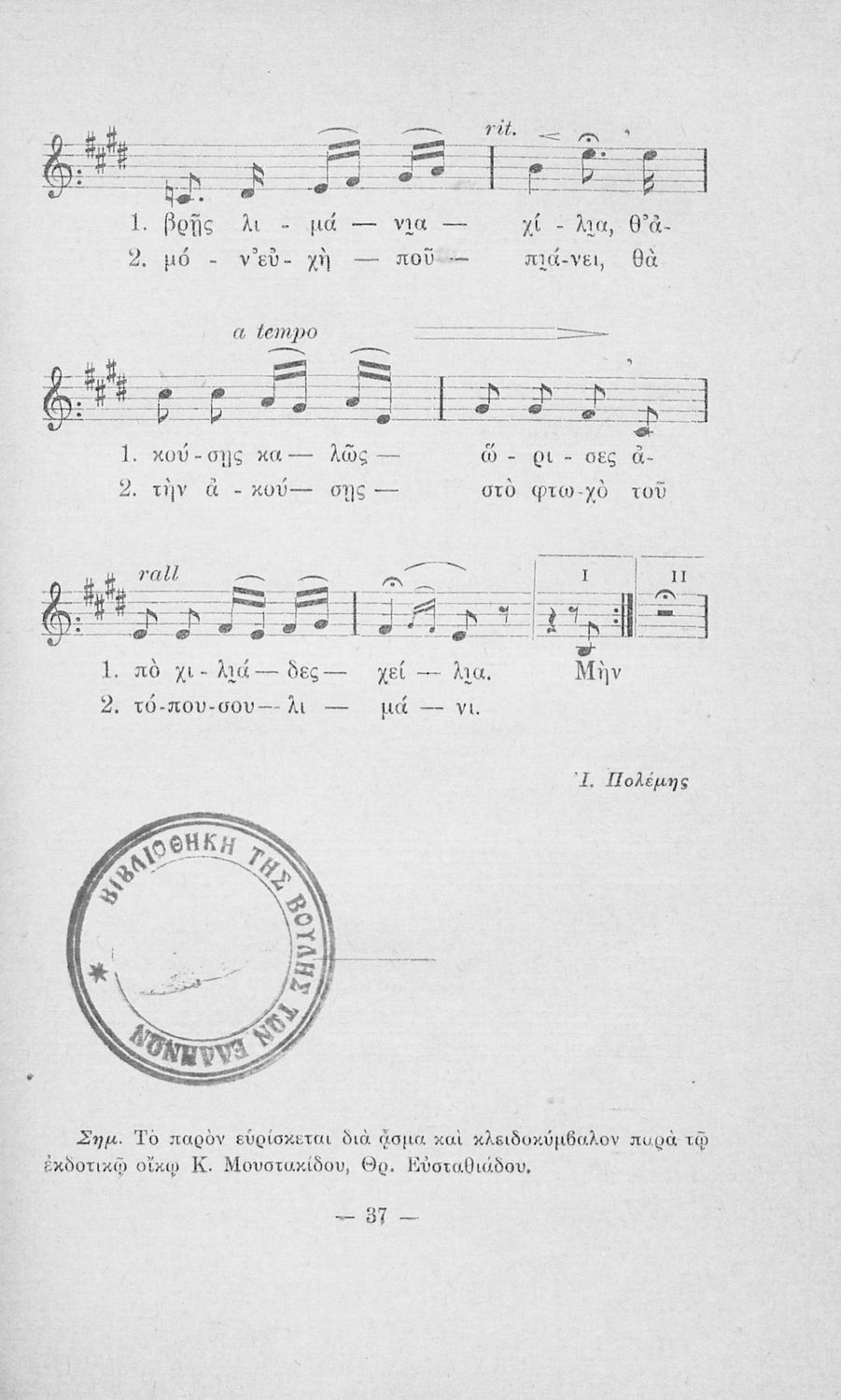 Συλλογή Σχολικών Ασμάτων. Προς χρήσιν των Διδασκαλείων