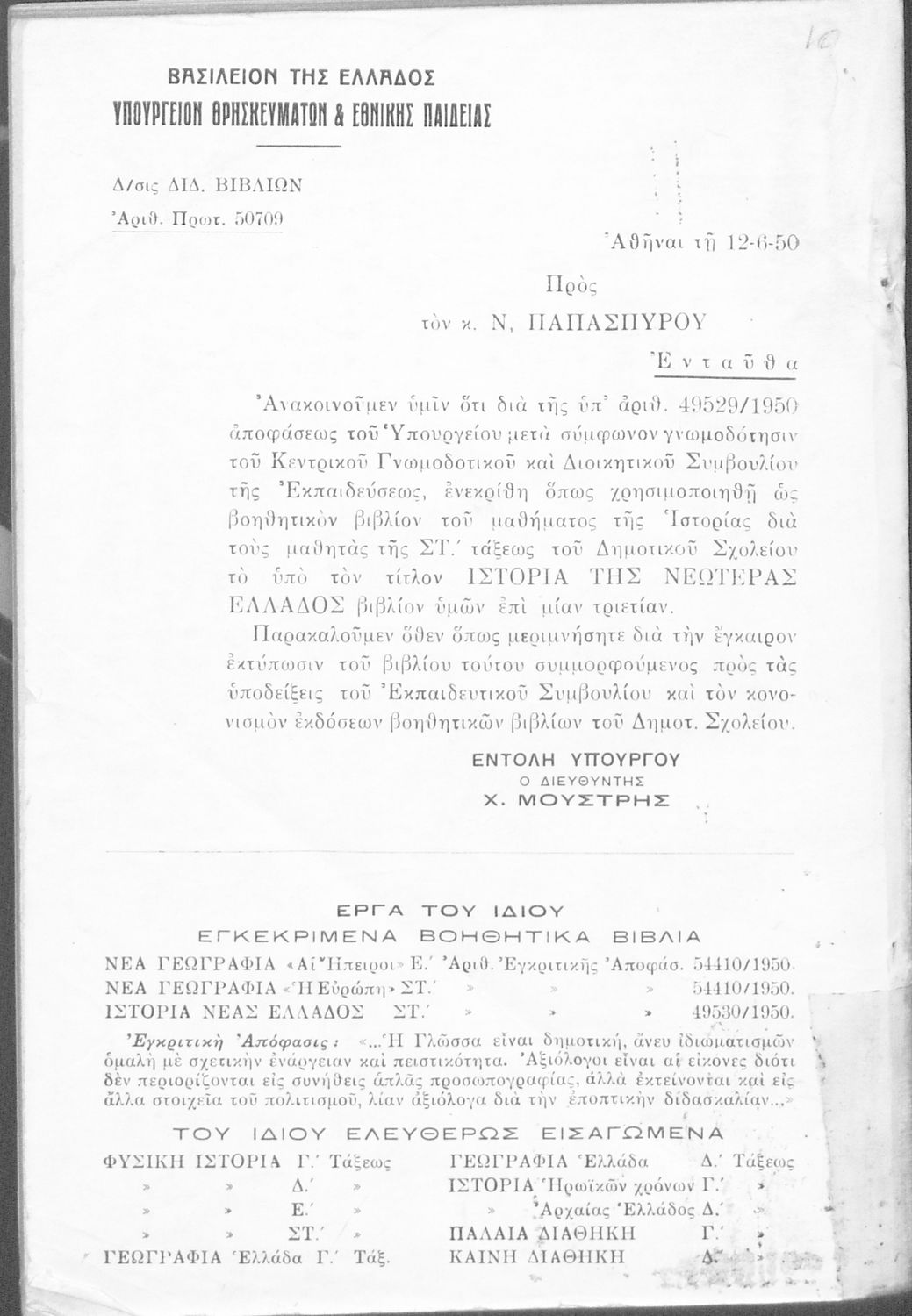 Υπουργική απόφαση / Σύμβαση: 50709/12-6-1950