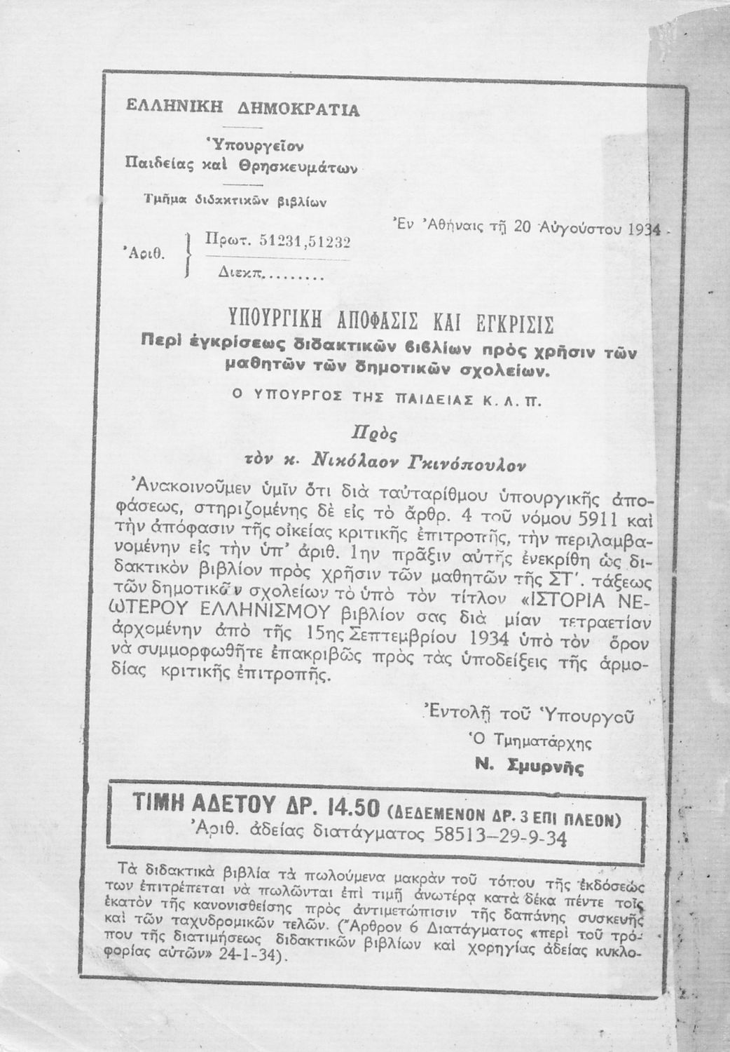 Υπουργική απόφαση / Σύμβαση: 51231,51232/20-8-1934