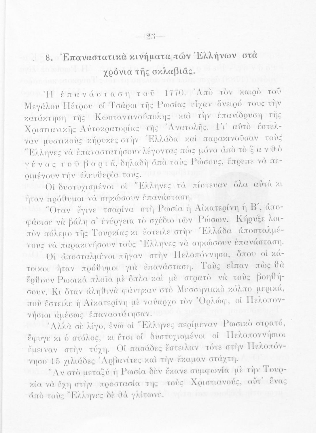 Το σύγγραμμα ήταν σχολικό εγχειρίδιο για μάθημα της Ιστορίας στο Δημοτικό. Αναφέρεται στα ιστορικά γεγονότα από την περίοδο της Οθωμανικής Αυτοκρατορίας και τη διοίκηση των ελληνικών κοινοτήτων, την οργάνωση ...
