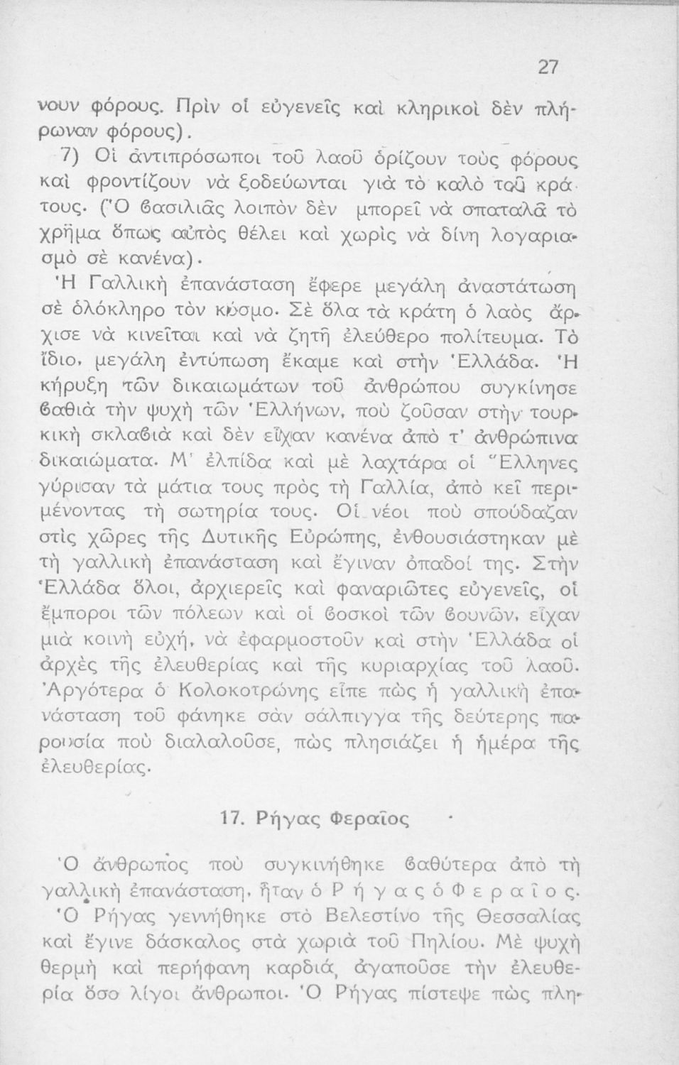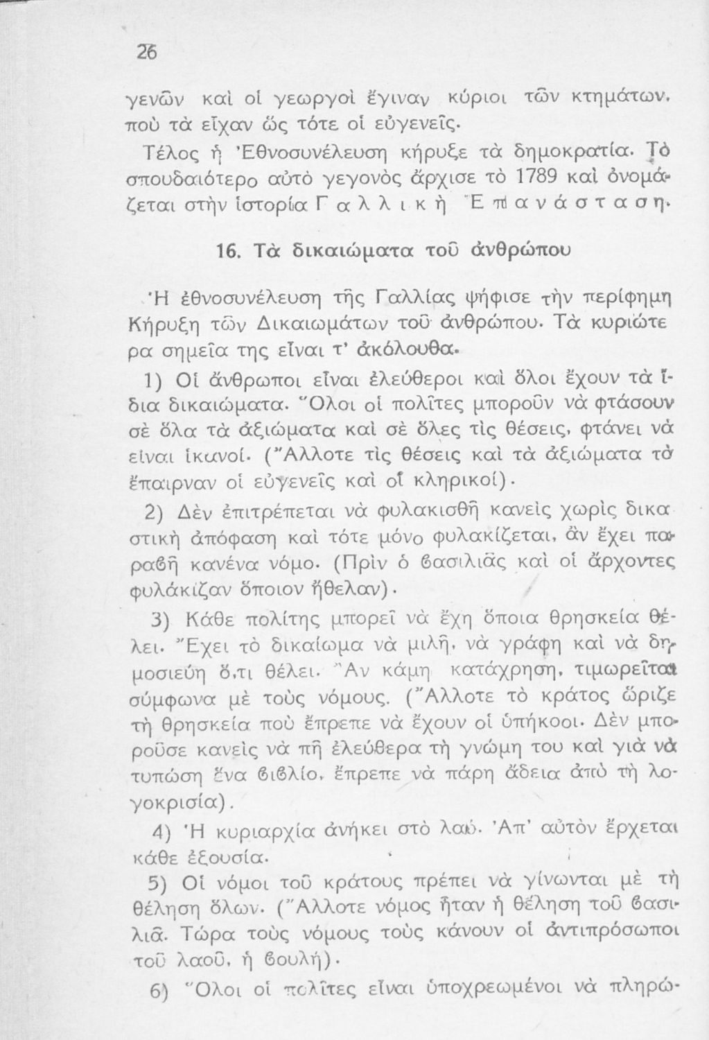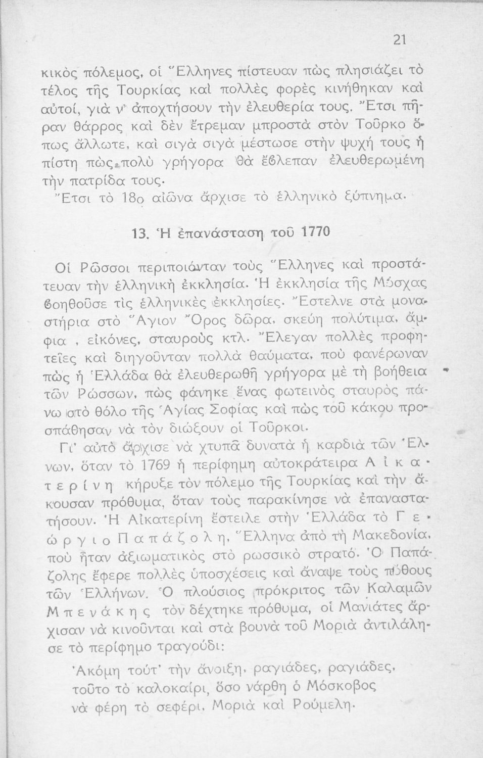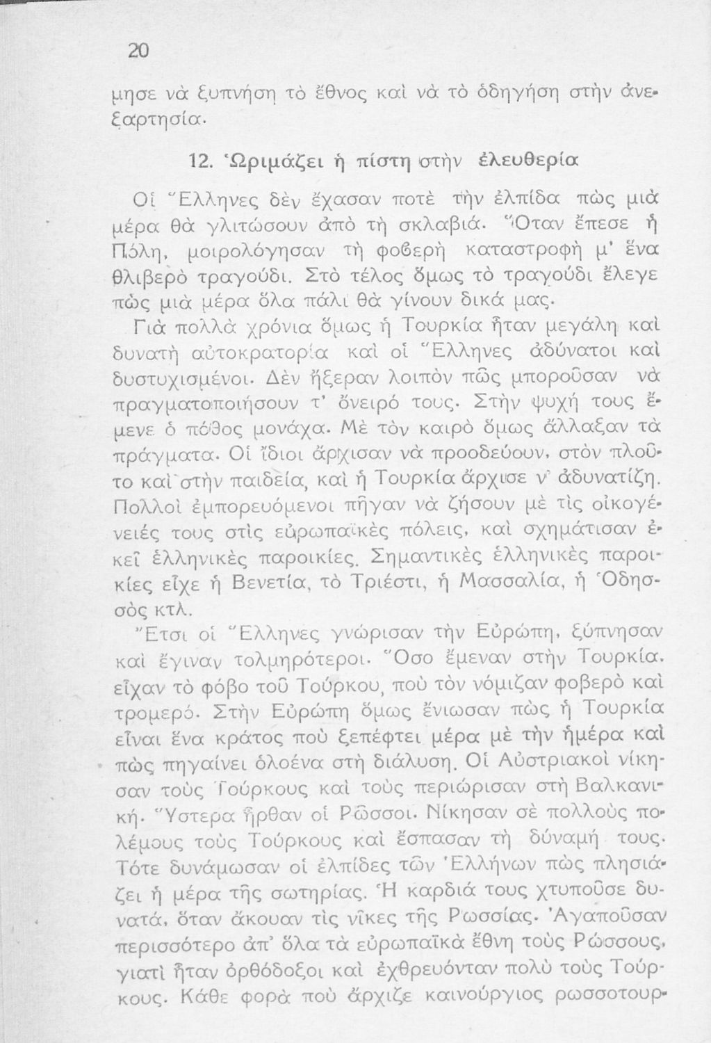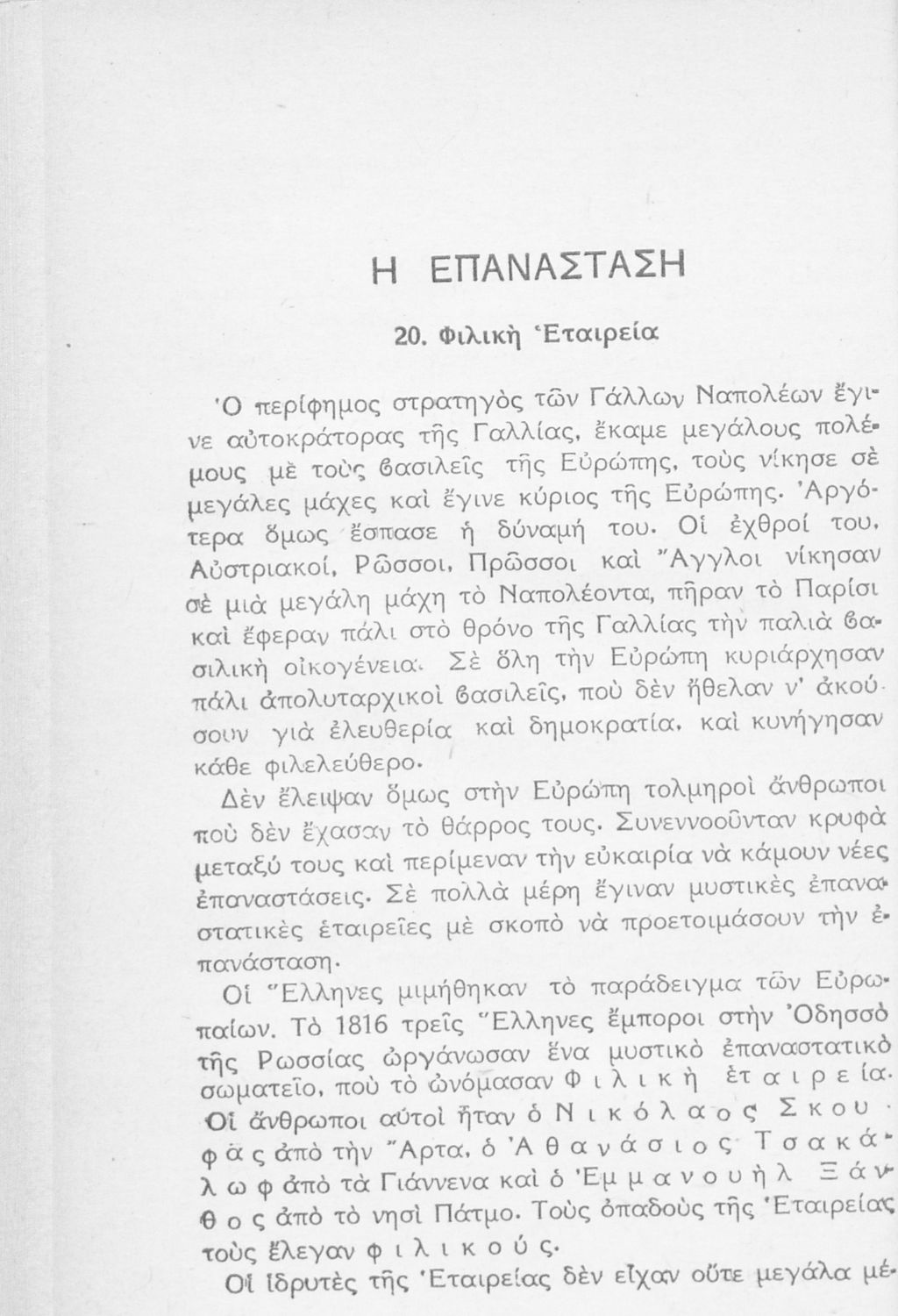 Σχολικό εγχειρίδιο για την ΣΤ΄ Τάξη Δημοτικού για το μάθημα της Ιστορίας. Περιλαμβάνει τα ιστορικά γεγονότα από την προεπαναστατική περίοδο και μετά αναλύει διεξοδικά τα χρόνια της Επανάστασης του 1821. Κλείνει με την συνοπτική αναφορά στη διοίκηση του ελληνικού κράτους κατά τα χρόνια του Όθωνα, του Γεωργίου Α΄, Κωνσταντίνου και Γεωργίου Β΄ . Αναφέρεται ακόμα πιο συνοπτικά στο Β΄ Παγκόσμιο Πόλεμο, την Κατοχή μέχρι και την αποχώρηση των Γερμανών.