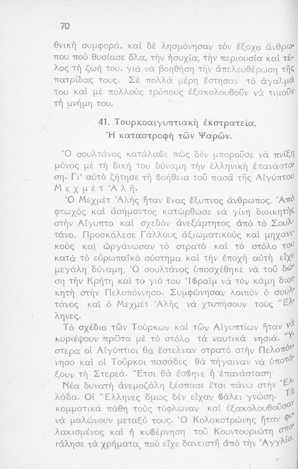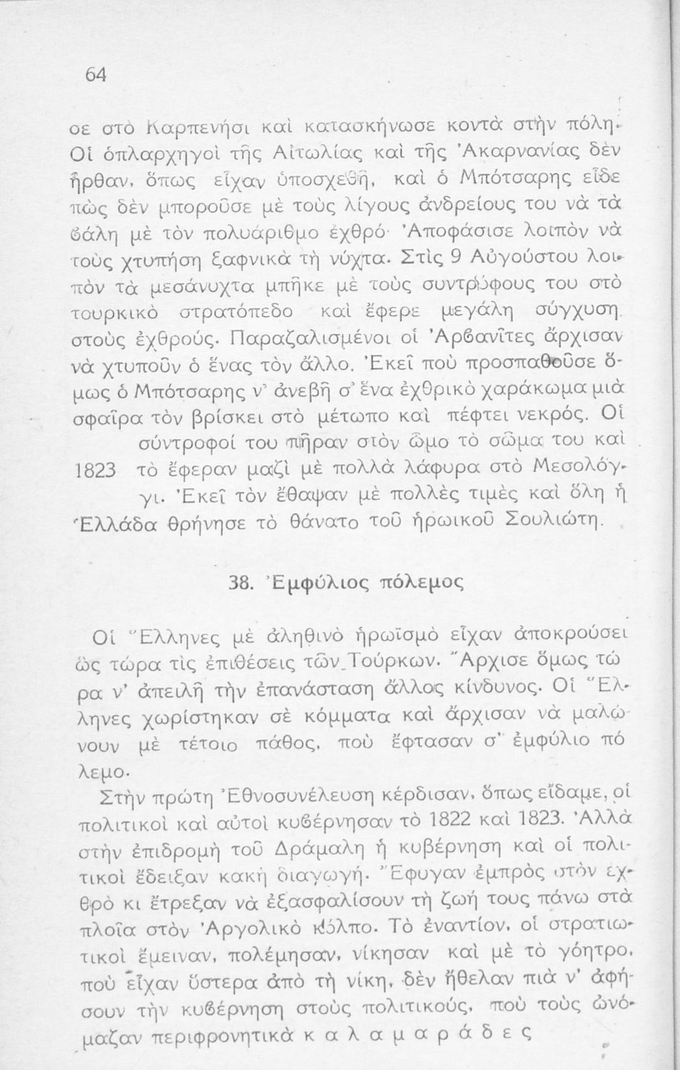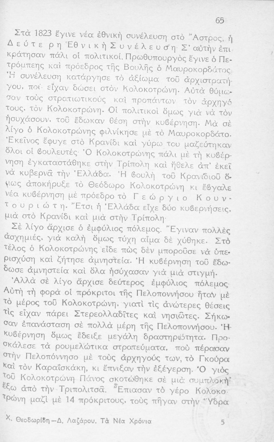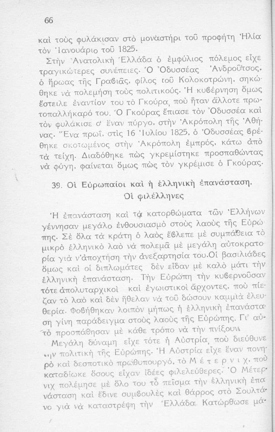520 ## _aΣχολικό εγχειρίδιο για την ΣΤ΄ Τάξη Δημοτικού για το μάθημα της Ιστορίας. Περιλαμβάνει τα ιστορικά γεγονότα από την προεπαναστατική περίοδο και μετά αναλύει διεξοδικά τα χρόνια της Επανάστασης του 1821. Κλείνει με την συνοπτική αναφορά στη διοίκηση του ελληνικού κράτους κατά τα χρόνια του Όθωνα, του Γεωργίου Α΄, Κωνσταντίνου και Γεωργίου Β΄ . Αναφέρεται ακόμα πιο συνοπτικά στο Β΄ Παγκόσμιο Πόλεμο, την Κατοχή μέχρι και την αποχώρηση των Γερμανών.