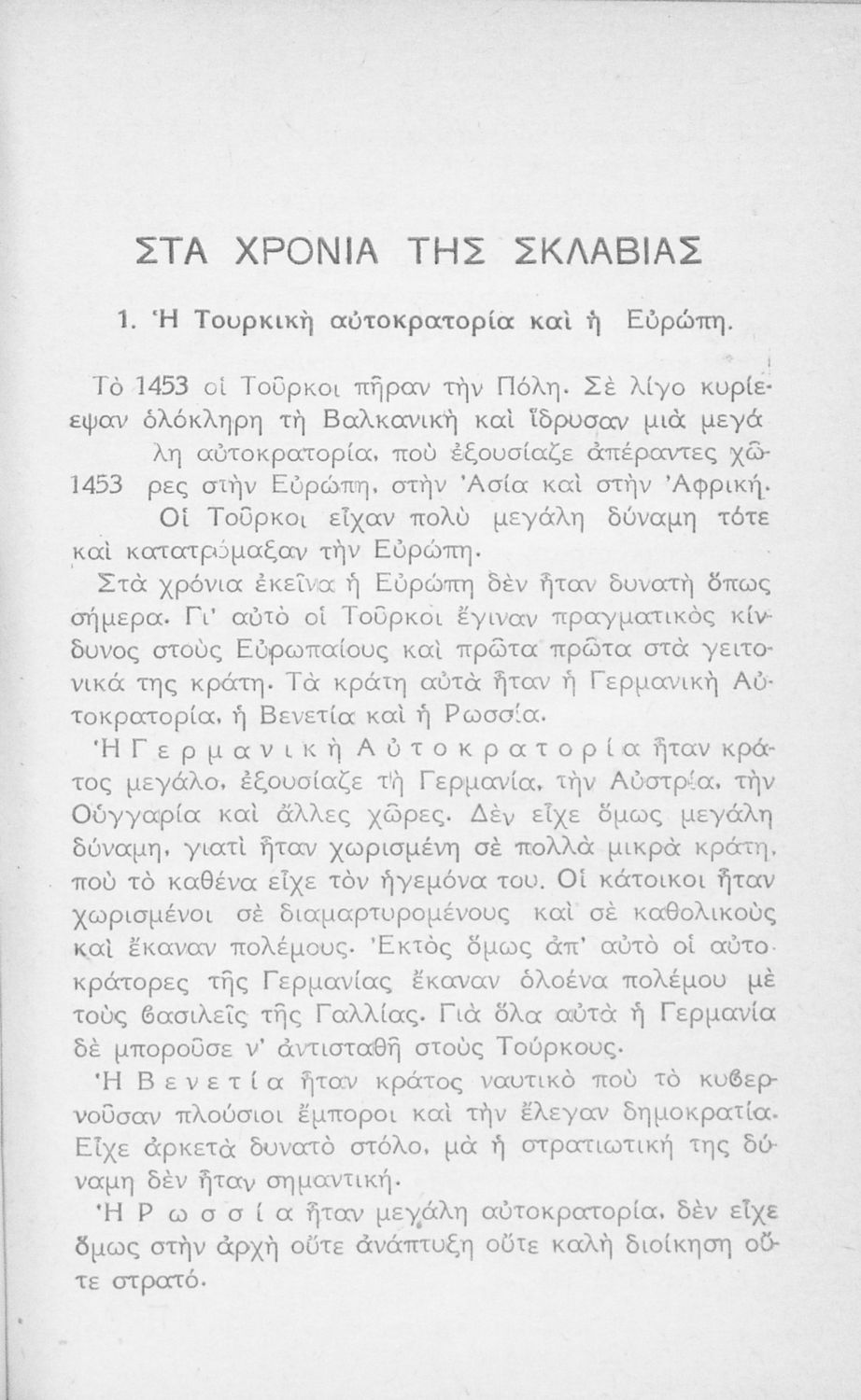 LDR 01662 2200193 4500 035 ## _a03-20561205 040 ## _aΒιβλιοθήκη της Βουλής των Ελλήνων 041 ## _ael 100 ## _aΧ. Θεοδωρίδης _aΑ. Λαζάρου 110 ## _a20561205 245 0# _aΤα Νέα Χρόνια. Για την ΣΤ΄ του Δημοτικού Σχολείου 260 ## _aΑθήνα _bΔημ. Δημητράκος Α. Ε _c1946 300 ## _a119 _bΣκίτσα, εικόνες, χάρτες (ασπρόμαυρα) 520 ## _aΣχολικό εγχειρίδιο για την ΣΤ΄ Τάξη Δημοτικού για το μάθημα της Ιστορίας. Περιλαμβάνει τα ιστορικά γεγονότα από την προεπαναστατική περίοδο και μετά αναλύει διεξοδικά τα χρόνια της Επανάστασης του 1821. Κλείνει με την συνοπτική αναφορά στη διοίκηση του ελληνικού κράτους κατά τα χρόνια του Όθωνα, του Γεωργίου Α΄, Κωνσταντίνου και Γεωργίου Β΄ . Αναφέρεται ακόμα πιο συνοπτικά στο Β΄ Παγκόσμιο Πόλεμο, την Κατοχή μέχρι και την αποχώρηση των Γερμανών. 521 ## _aΣΤ' Δημοτικού 522 ## _aΕλλάδα 546 ## _aΔημοτική 563 ## _aΣκληρό Εξώφυλλο 650 #4 _aΒ΄ Παγκόσμιος _aΕλλάδα _aΕπανάσταση 1821 _aΙστορία _aΚαποδίστριας _aΚατοχή _aΜεγάλη Ιδέα _aΌθωνας